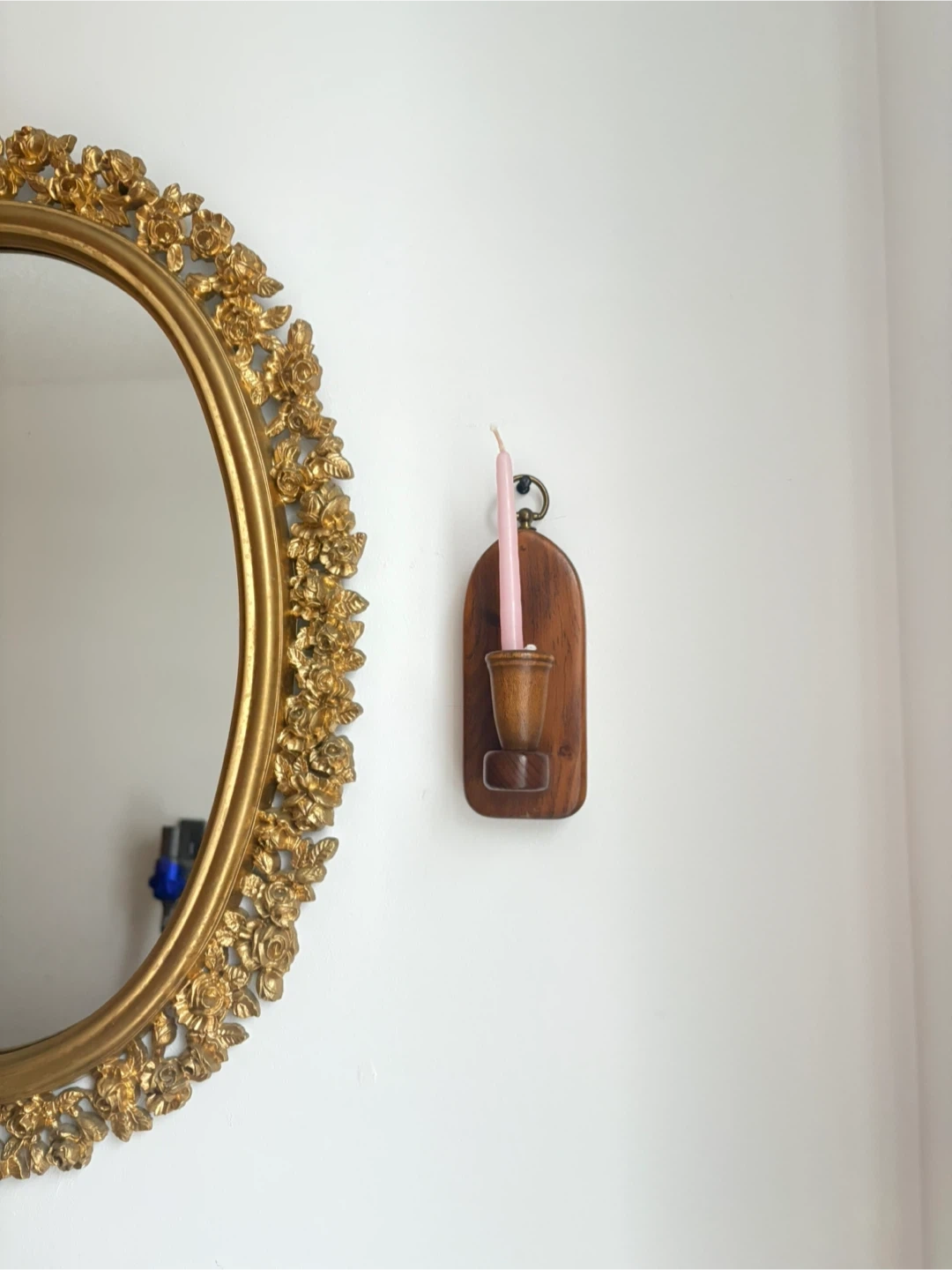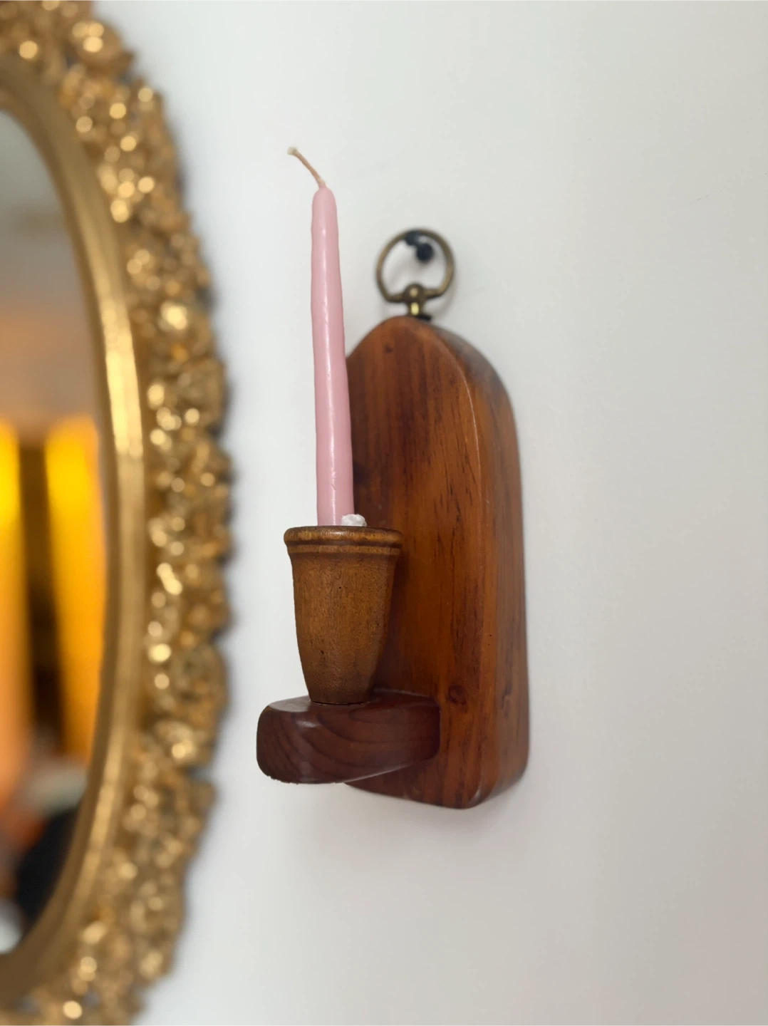 Set of 2 wooden wall sconce candle holder. It's made of wood and features a natural Pick up