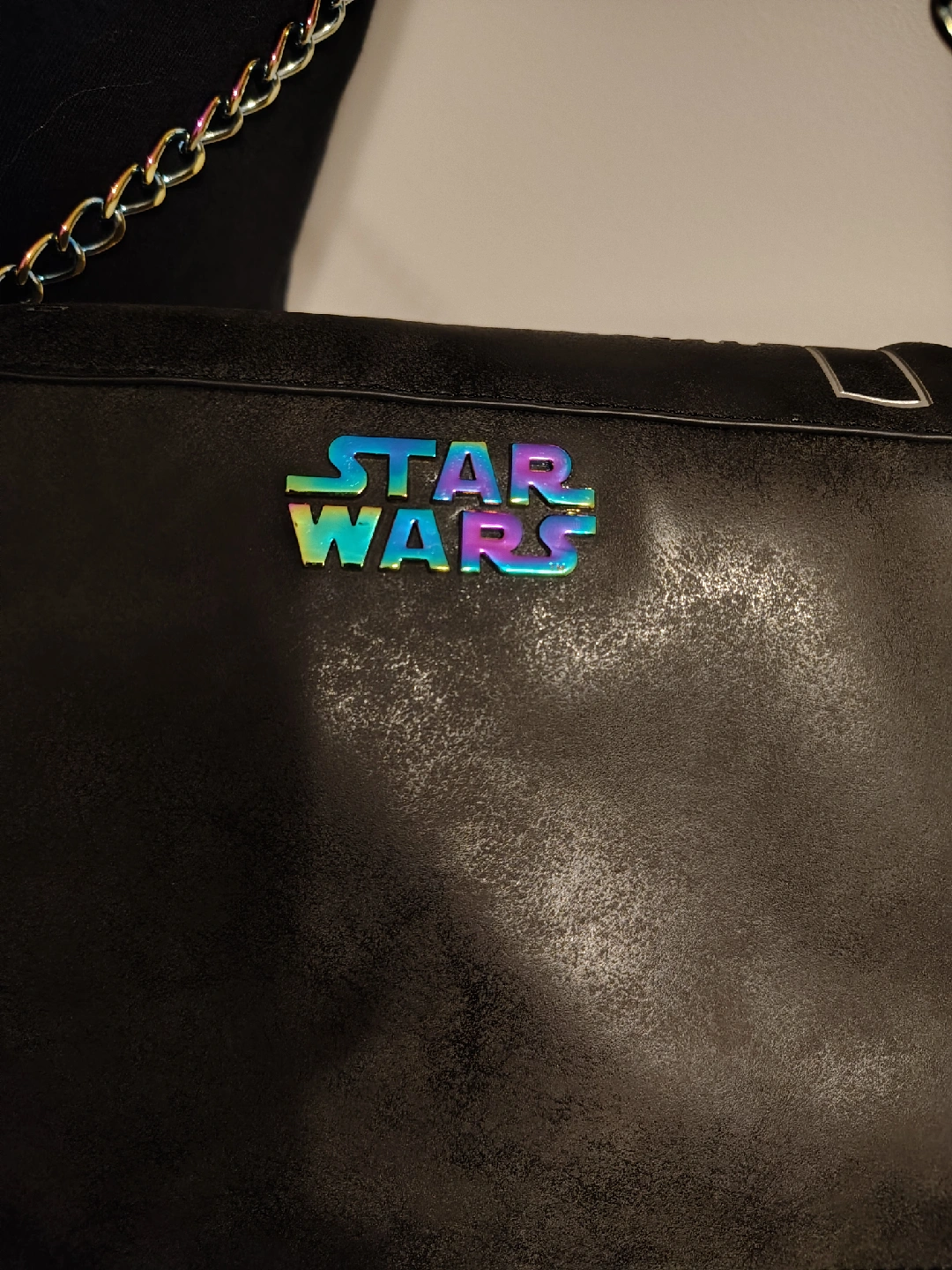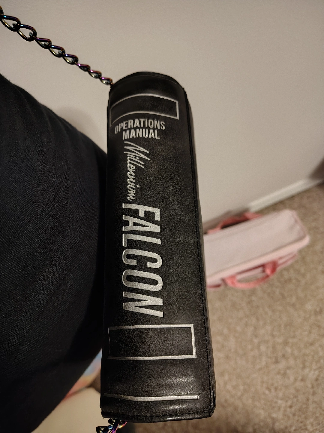 This is a Star Wars Millennium Falcon Operations Manual crossbody bag! It features a cool design of the Millennium Falcon and the Star Wars logo. Perfect for any Star Wars fan!