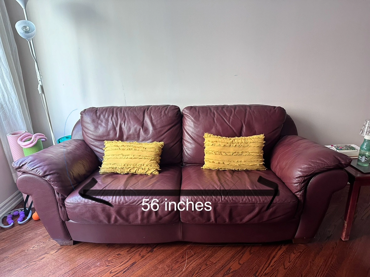 Size is 56 inches as described in picture, and filling has recently been replaced.