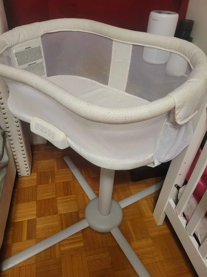 HALO BassiNest is the only bassinet with a 360º swivel. Patented lowering bedside wall makes it easier to care for baby from bed, especially for breastfeeding and C-section moms. Wall can be locked in the upright position, if desired.