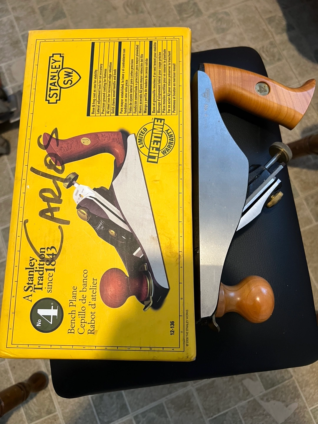 Selling a Stanley No. 4 bench plane! It's in great condition and comes with the original box. This plane is perfect for smoothing and flattening wood surfaces. A great tool for any woodworking enthusiast