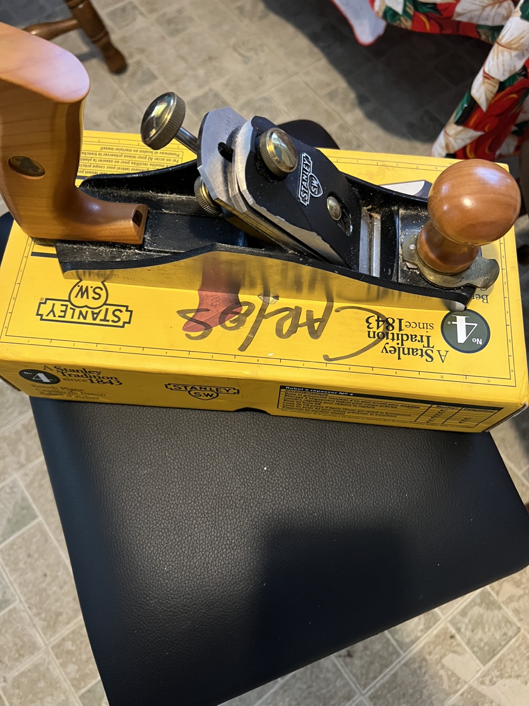 Selling a Stanley No. 4 bench plane! It's in great condition and comes with the original box. This plane is perfect for smoothing and flattening wood surfaces. A great tool for any woodworking enthusiast