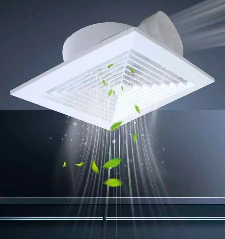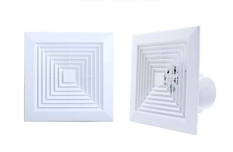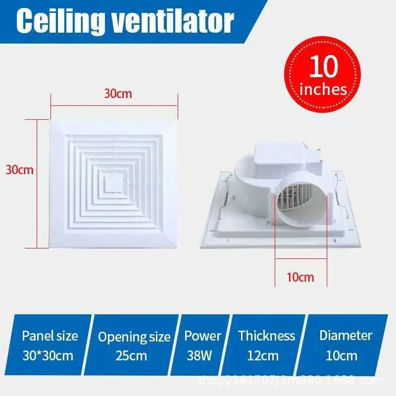 White ceiling ventilator fan with a 10-inch panel size and 25cm opening size. It has a power of 38W and a thickness of 12cm. The diameter of the duct is 10cm. This vent fan helps to improve air circulation in your home.