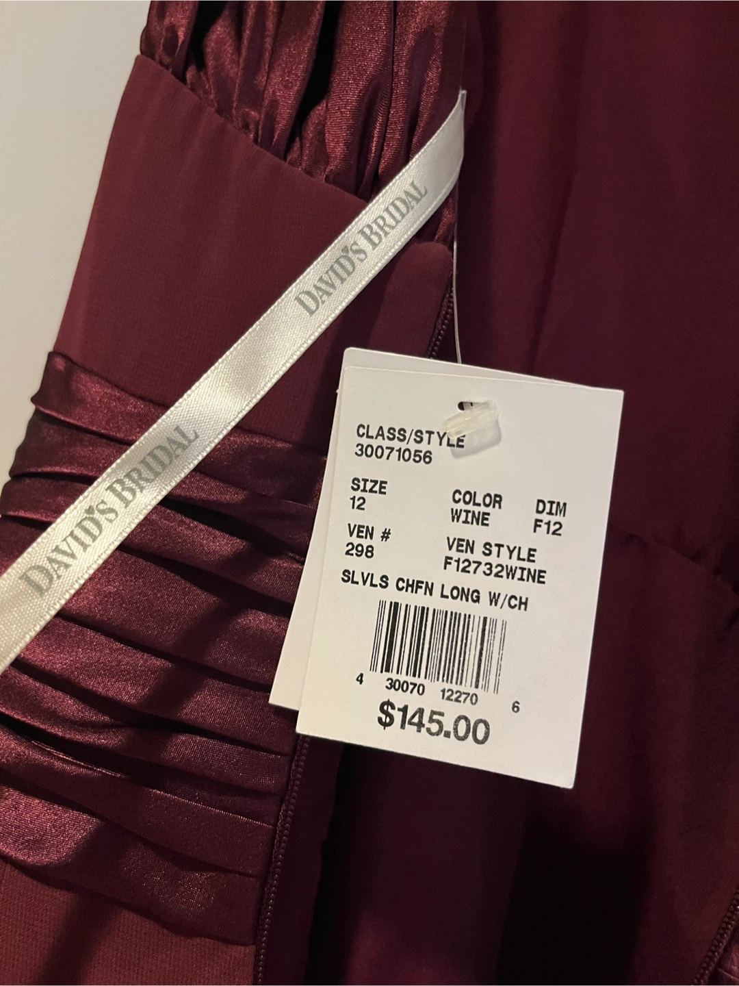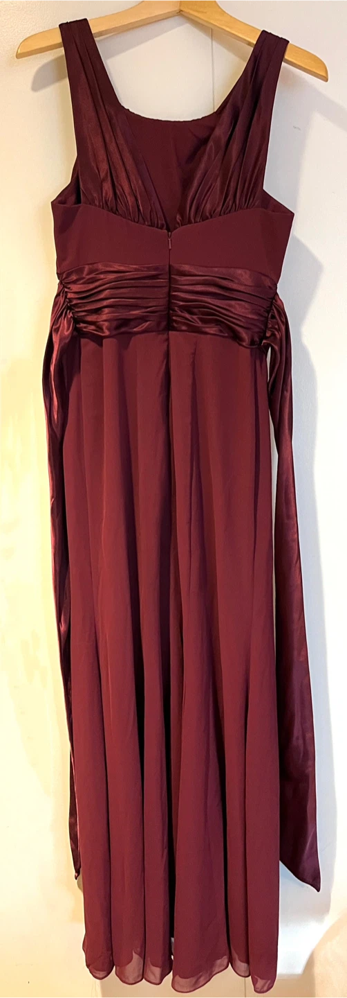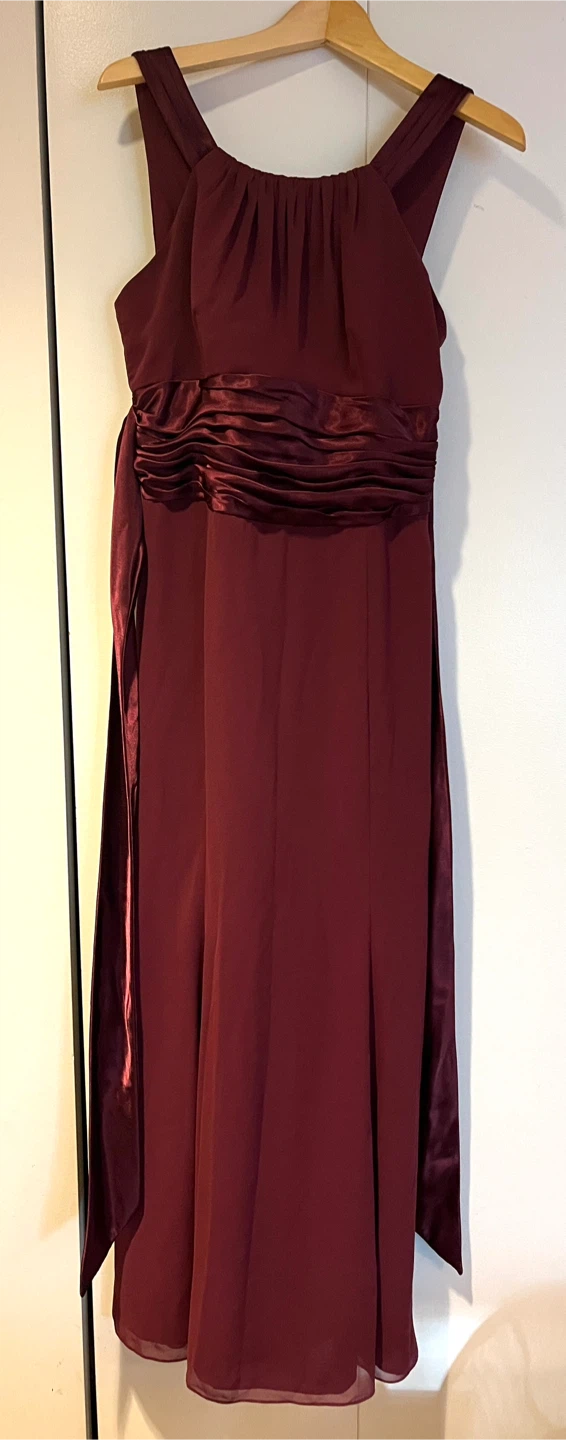 Elevate your formal attire with the David's Bridal Chiffon Charmeuse Wine Floor Length Dress!