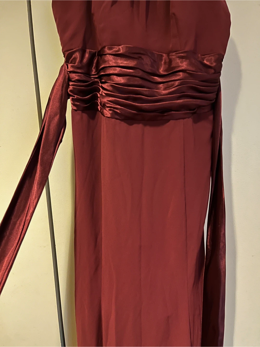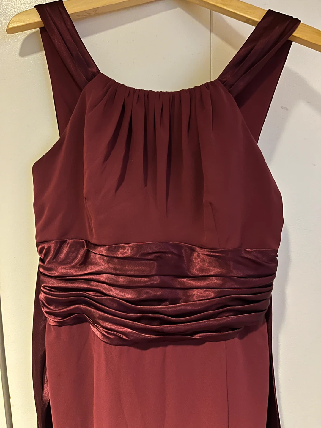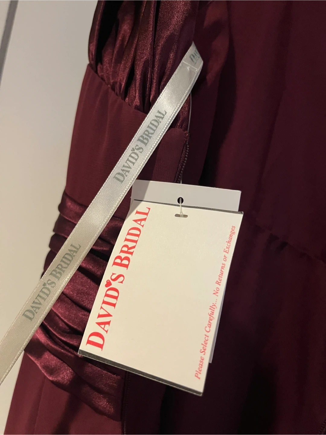 Elevate your formal attire with the David's Bridal Chiffon Charmeuse Wine Floor Length Dress!