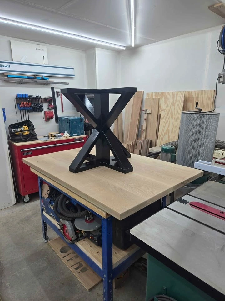Bring home a one-of-a-kind piece built to last generations. This trestle style dining table was handcrafted in my woodworking shop using solid 8/4 white oak, not veneer or mass produced parts. Every board was handcrafted selected for grain and color, then milled, joined and finished with care.