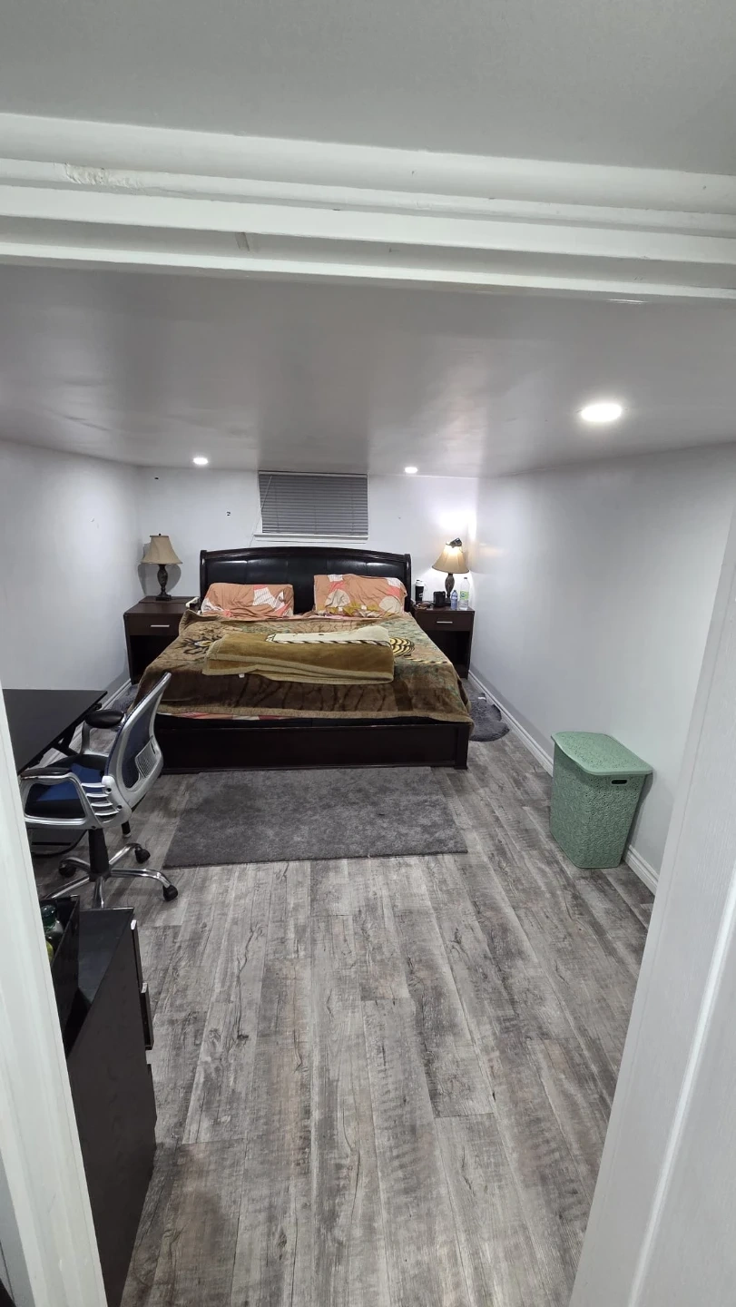 Large bedroom with king bed , fully furnished with Walking closet in a detached home. Comes with 1 to 2 parking at extra cost of 50 dollars each parking, shared kitchen, bathroom, and Living room. Can be ideal for a couple , 1 or 2 girls. Utilities included