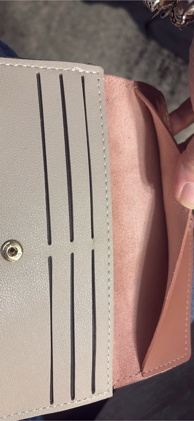 This stylish bi-fold wallet clutch is designed for everyday use. It's crafted from faux leather and features multiple card slots and a zippered pocket. A detachable wrist strap is included for convenience.