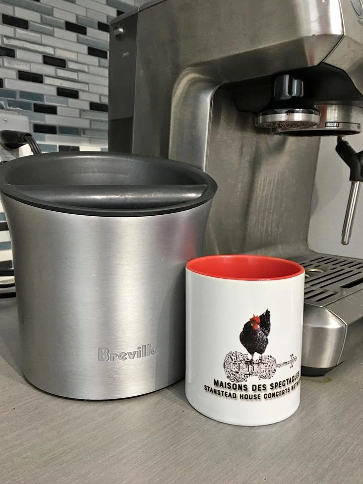 Breville Espresso Knock Box. Silver colour. Made of Plastic and stainless steel. Dishwasher safe inner bowl. For Espresso Machines. Dimensions: 16.3D x 16W x 16.8H Centimetres. Let me know if you're interested!