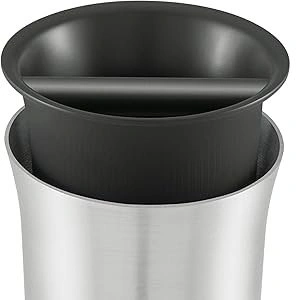 Breville Espresso Knock Box. Silver colour. Made of Plastic and stainless steel. Dishwasher safe inner bowl. For Espresso Machines. Dimensions: 16.3D x 16W x 16.8H Centimetres. Let me know if you're interested!