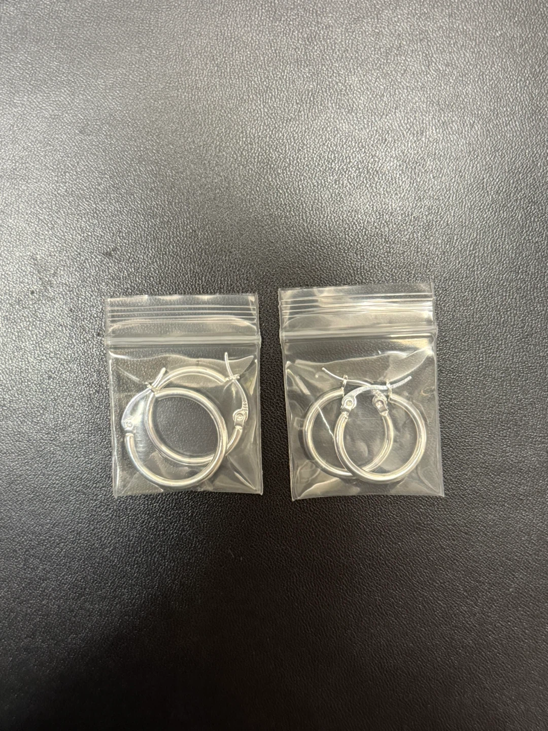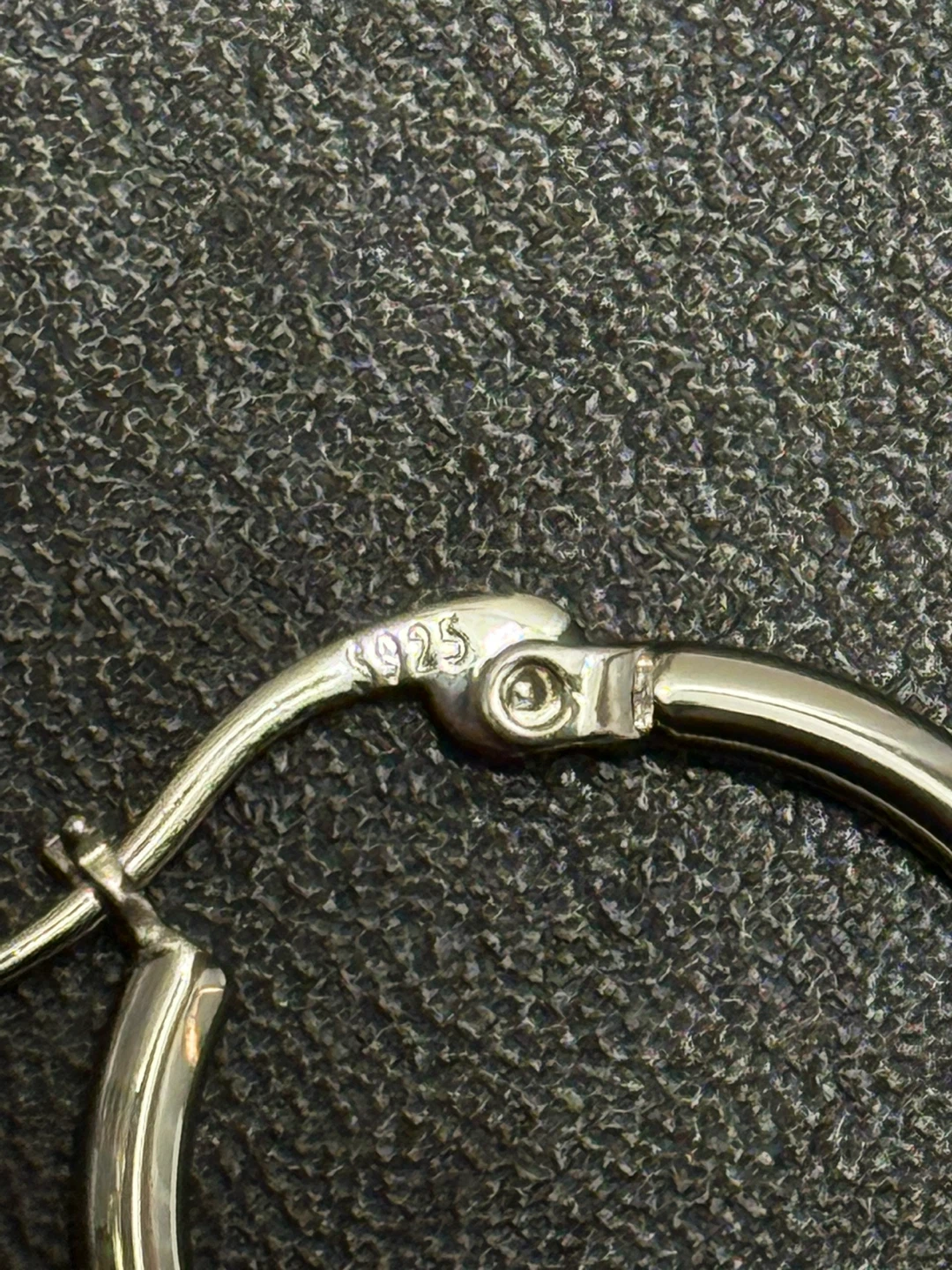 Selling a pair of brand new sterling silver hoop earrings. They are marked with 'S925', indicating sterling silver. These earrings are simple and classic, perfect for everyday wear!