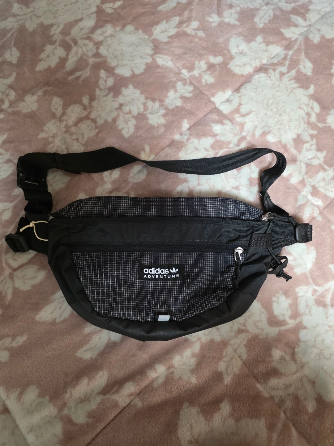 This is an Adidas Adventure fanny pack in black. It's made from durable material with a zippered main compartment. Adjustable strap for a comfortable fit.