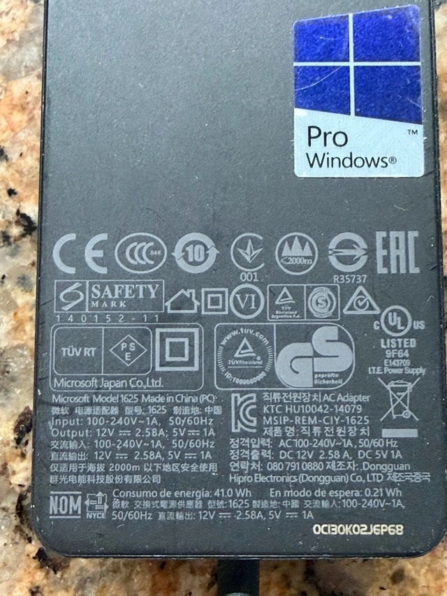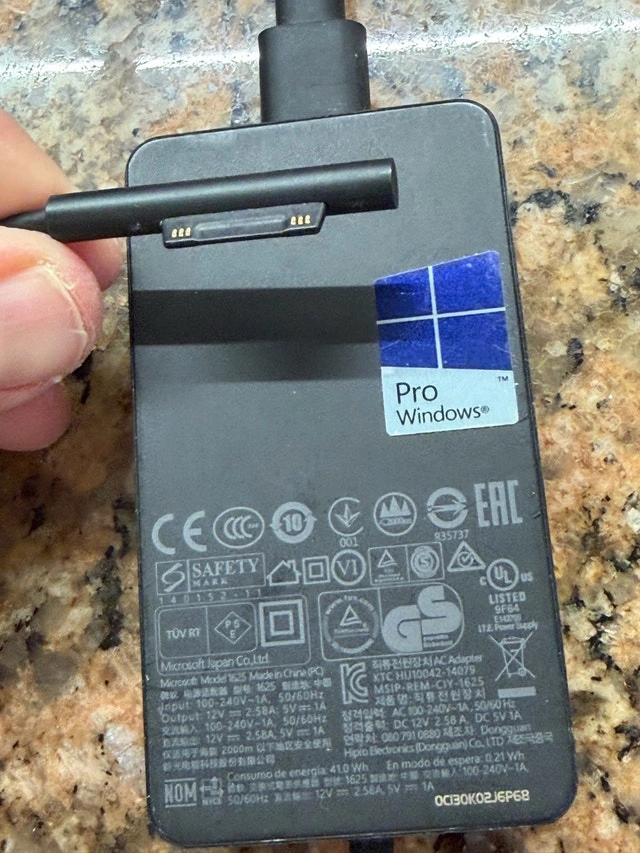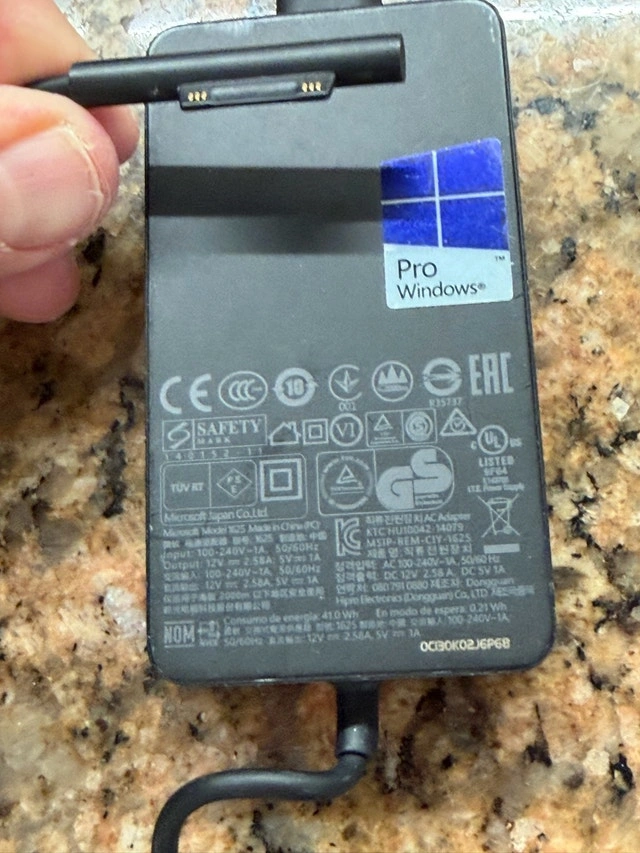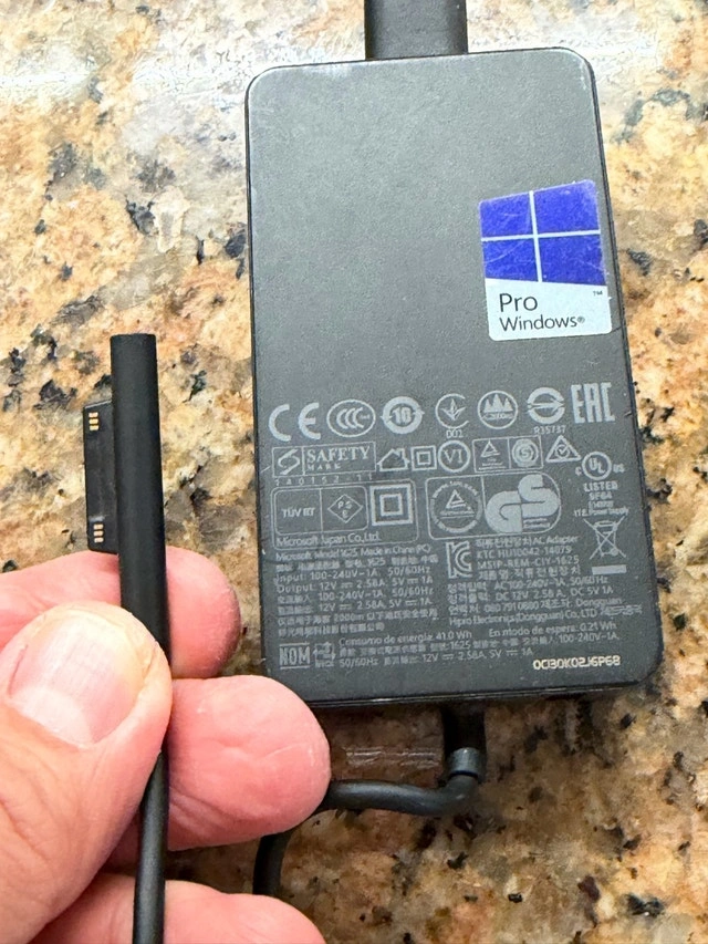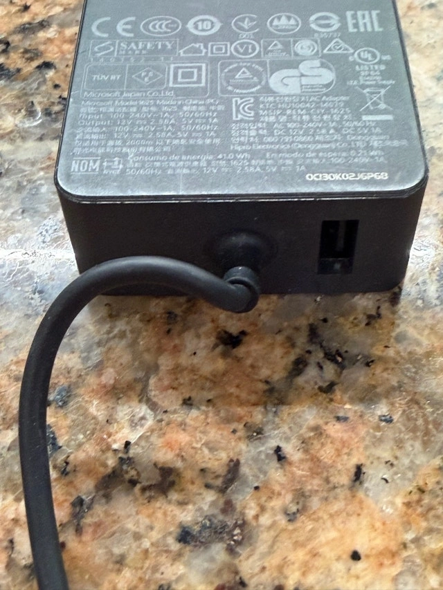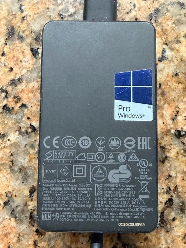 Genuine Microsoft charger, model 1625, for Surface products. Reliable 12V 2.58A power supply. In like-new pre-owned condition. Specs: Model: 1625, Input: 100-240V-1A, 50/60Hz, Output: 12V-2.58A, 5V-1A. A great power source for your Surface! If the ad is up, it's still available. Priced fairly for its condition.