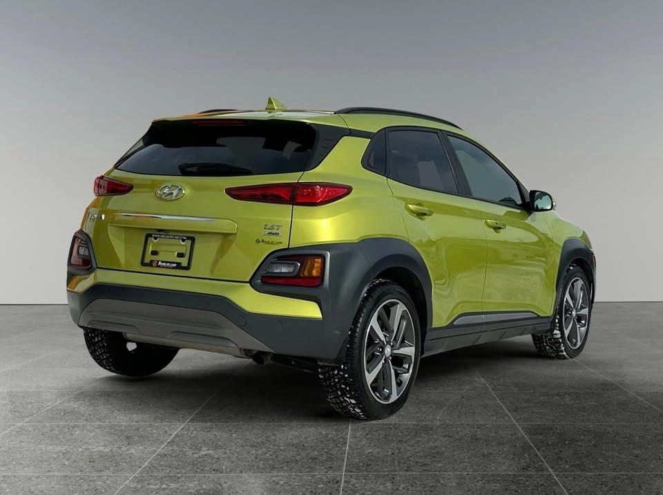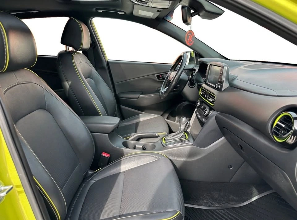 No reported accidents, one owner. The 2019 Hyundai Kona 1.6T Ultimate AWD with Lime Color Pack is a standout compact SUV that combines performance, style, and advanced features. Equipped with a 1.6L turbocharged engine paired with all-wheel drive, it delivers a responsive and confident driving experience, making it ideal for various road conditions. VIN: KM8K5CA59KU327204
