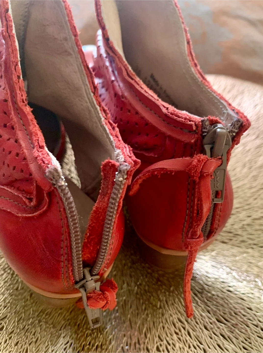 DKODE Red Leather Perforated Ankle Boots