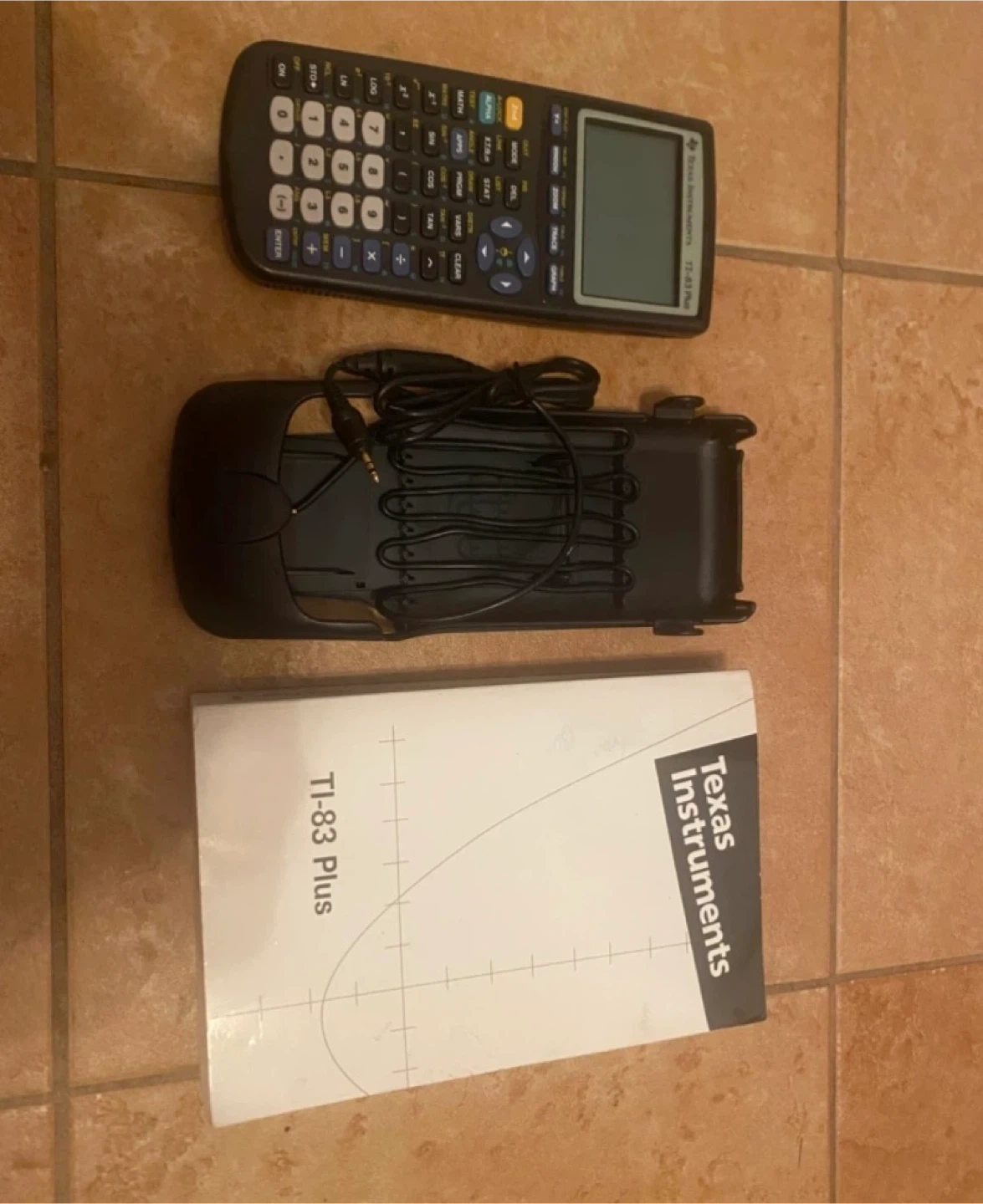 This Texas Instruments TI-83 Plus graphing calculator is perfect for high school advanced functions and college math courses. It includes the calculator, a protective cover, and the original manual. It's a reliable tool for solving complex equations and graphing functions.