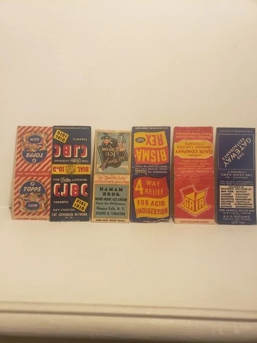 Delve into the past with this lot of 6 antique matchbook covers, a charming addition to any vintage collection. Each cover showcases the artistry and advertising of bygone days, making them ideal for collectors and enthusiasts of paper ephemera.