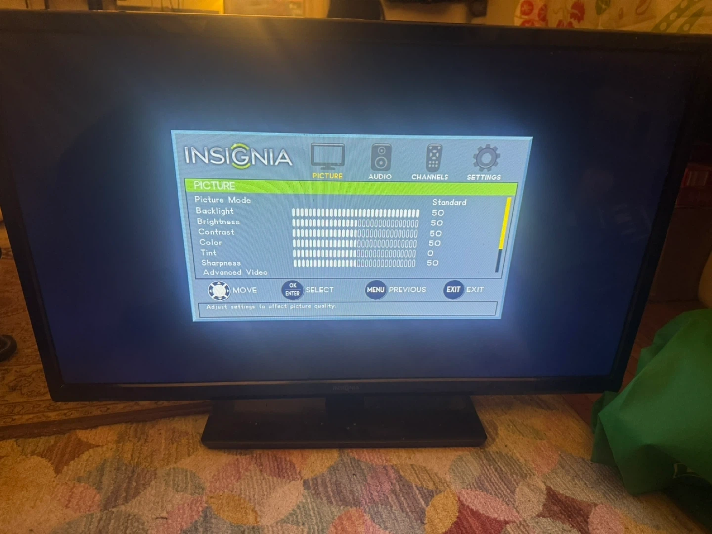 This is an Insignia television. It displays picture settings like brightness and contrast. This TV is ready for your viewing enjoyment! Message me for pricing I do not have the remote. You would have to use a universal remote.