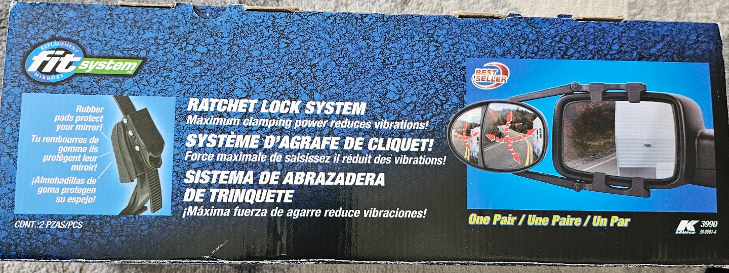 Fit System Dual View Clip-on Towing Mirrors - New in Box