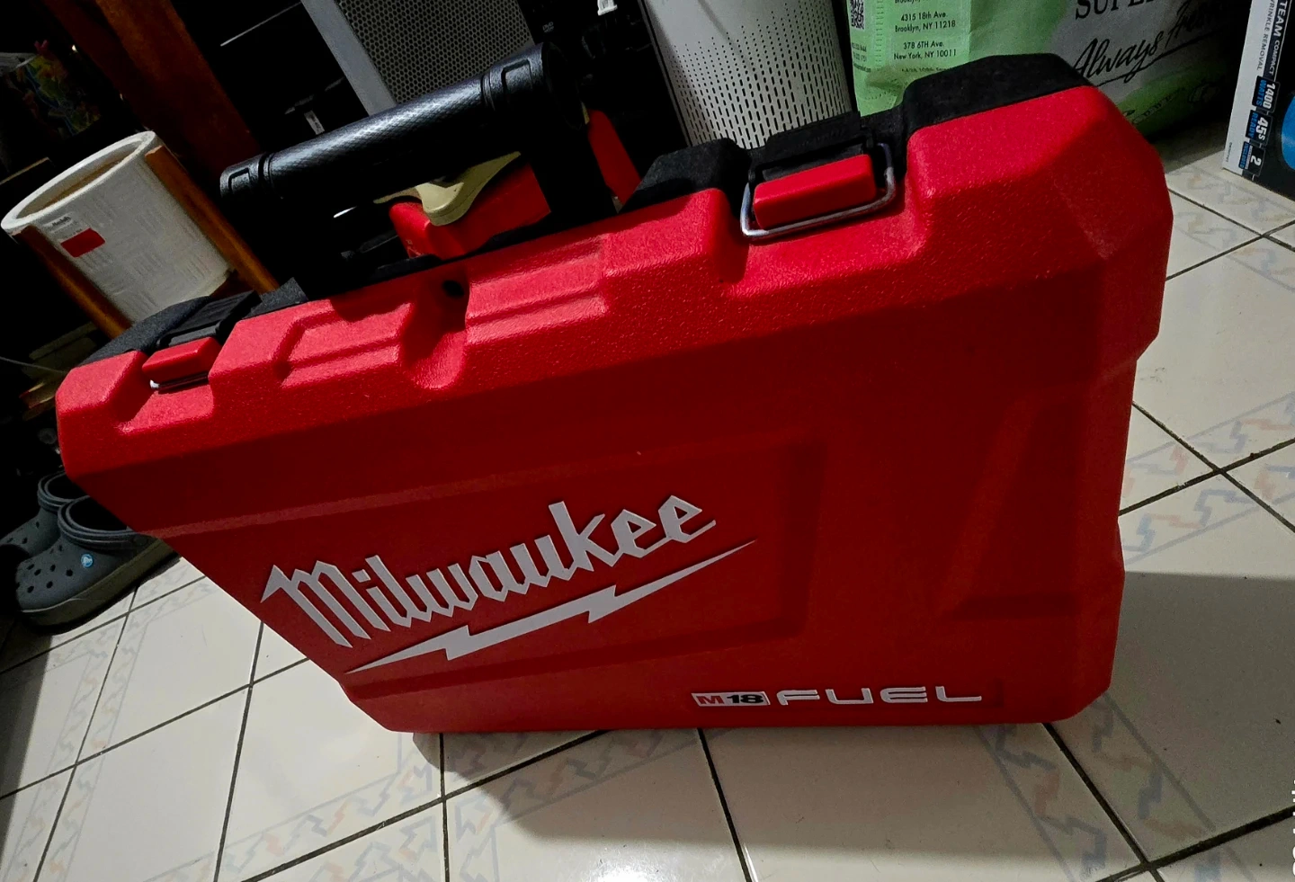 The Milwaukee 2897-22 M18 FUEL Cordless 2-Tool Hard Carrying Case is a large, red plastic tool case with a 5-inch diameter and 20-inch length. Designed by Milwaukee, this case is water-resistant and features a lockable handle for secure transportation. With a matte finish, this tool case is perfect for storing and carrying your tools with style and durability. Made in the United States, this case is a reliable option for any handyman or professional tradesperson.