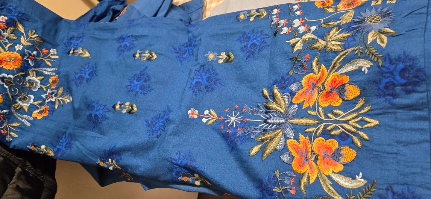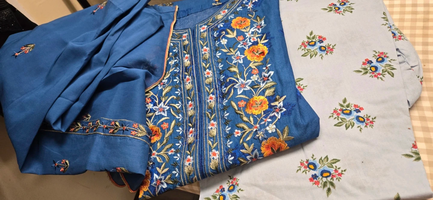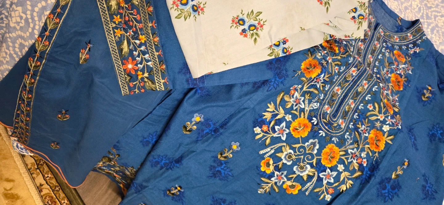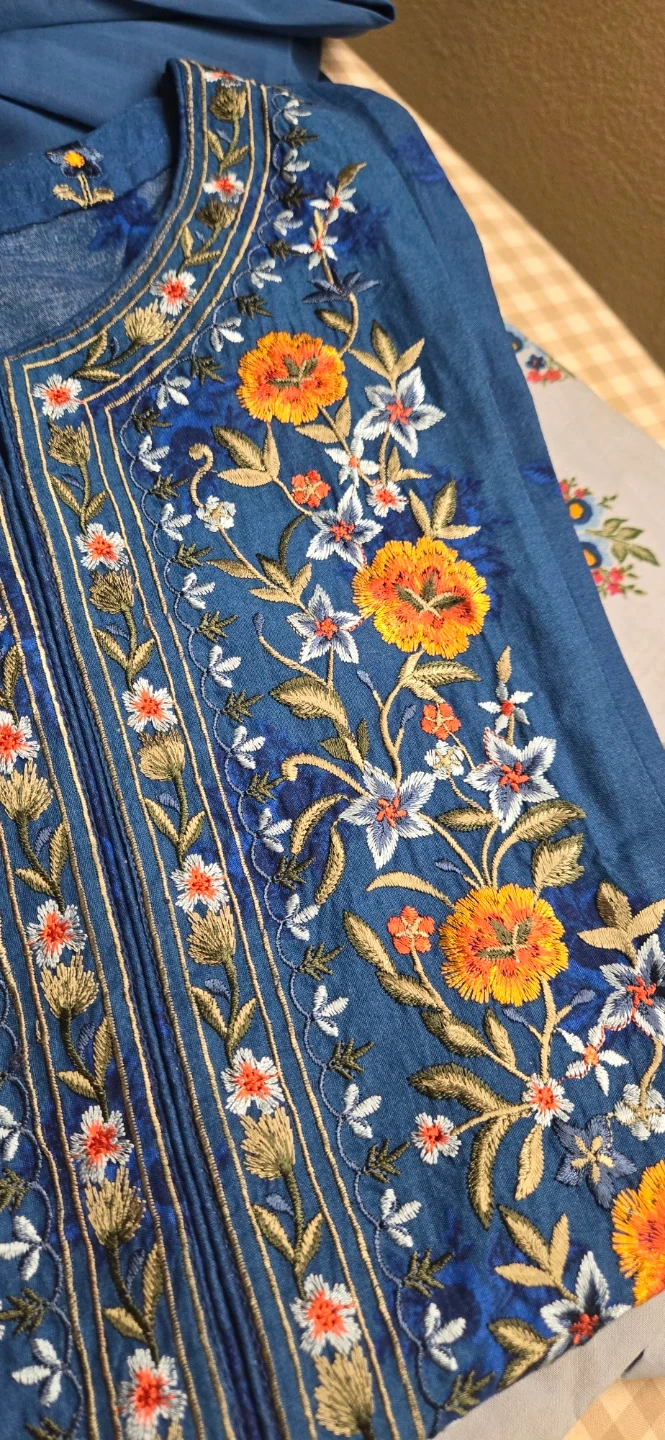 Embroidered Blue Kurti and Pants Set 3 piece