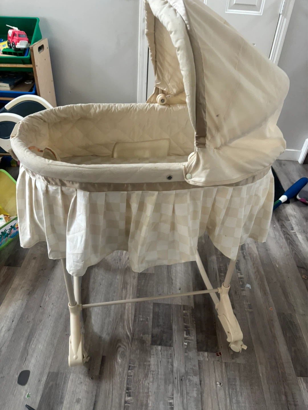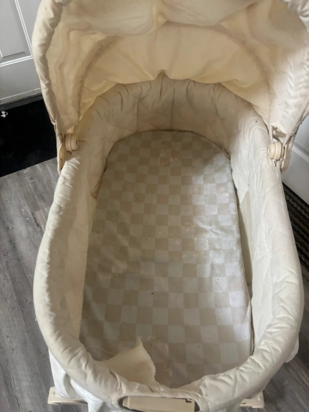 Baby first day cart in cream colours . The cover can be removed and washed and cleaned but I will do it for f anyone is interested. I will do cleaning all.