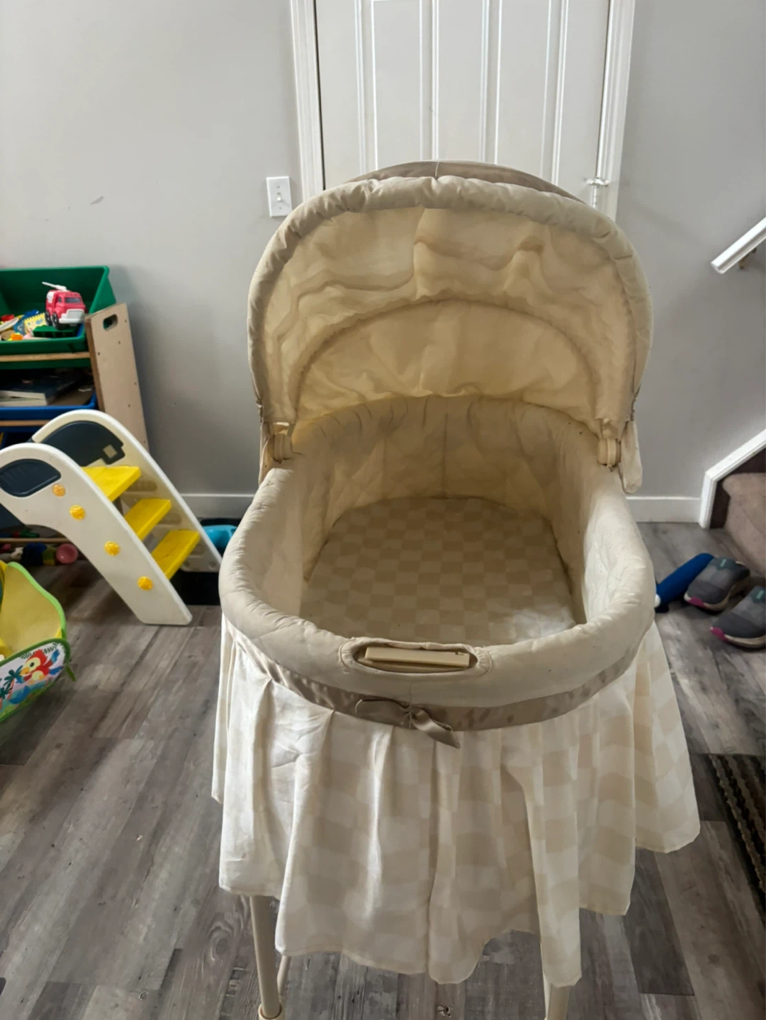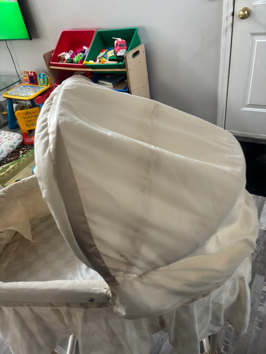Baby first day cart in cream colours . The cover can be removed and washed and cleaned but I will do it for f anyone is interested. I will do cleaning all.