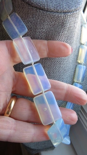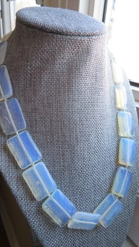 Antique Vintage OPALINE OPALESCENT opalite rectangle necklace fi