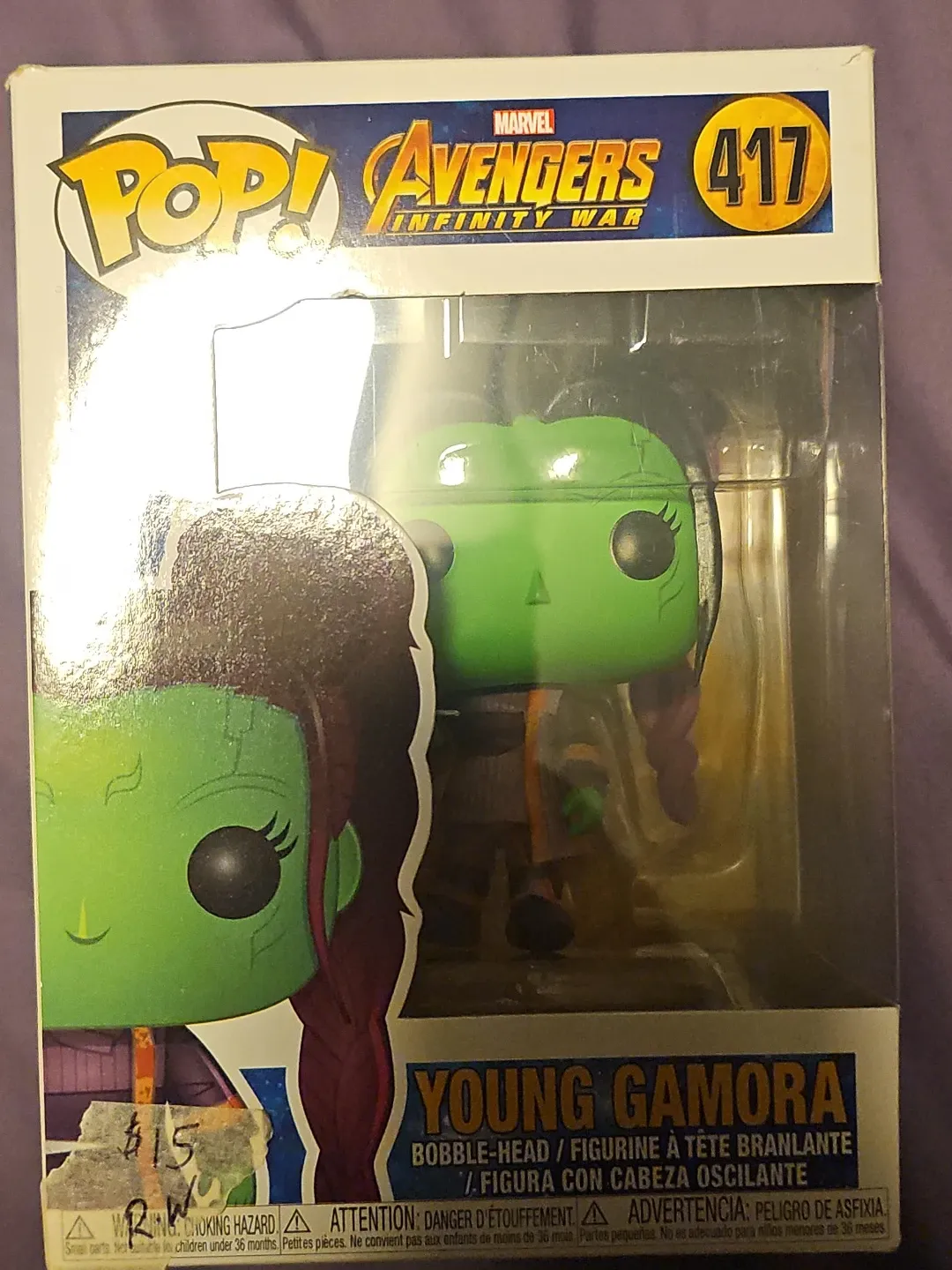 This is a Funko Pop! vinyl figure of Young Gamora from Marvel's Avengers: Infinity War. It's a bobble-head figure and comes in its original box. This figure is great for Marvel collectors!