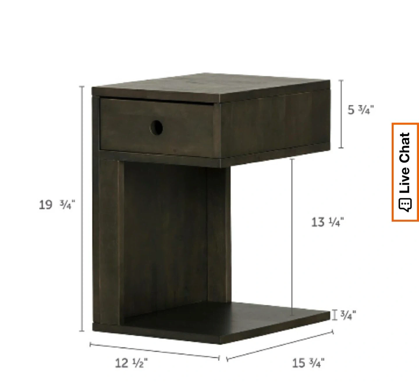 A dark wood bedside table featuring a single drawer and an open shelf below. It's 19 3/4 inches tall. This table's compact design makes it useful for small spaces.