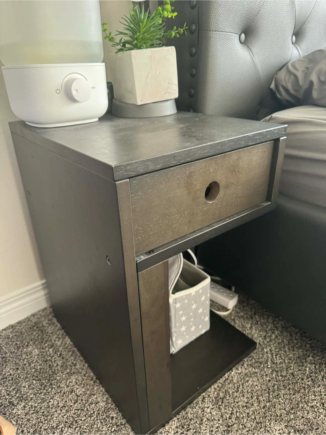 Dark Wood Bedside Table with Drawer
