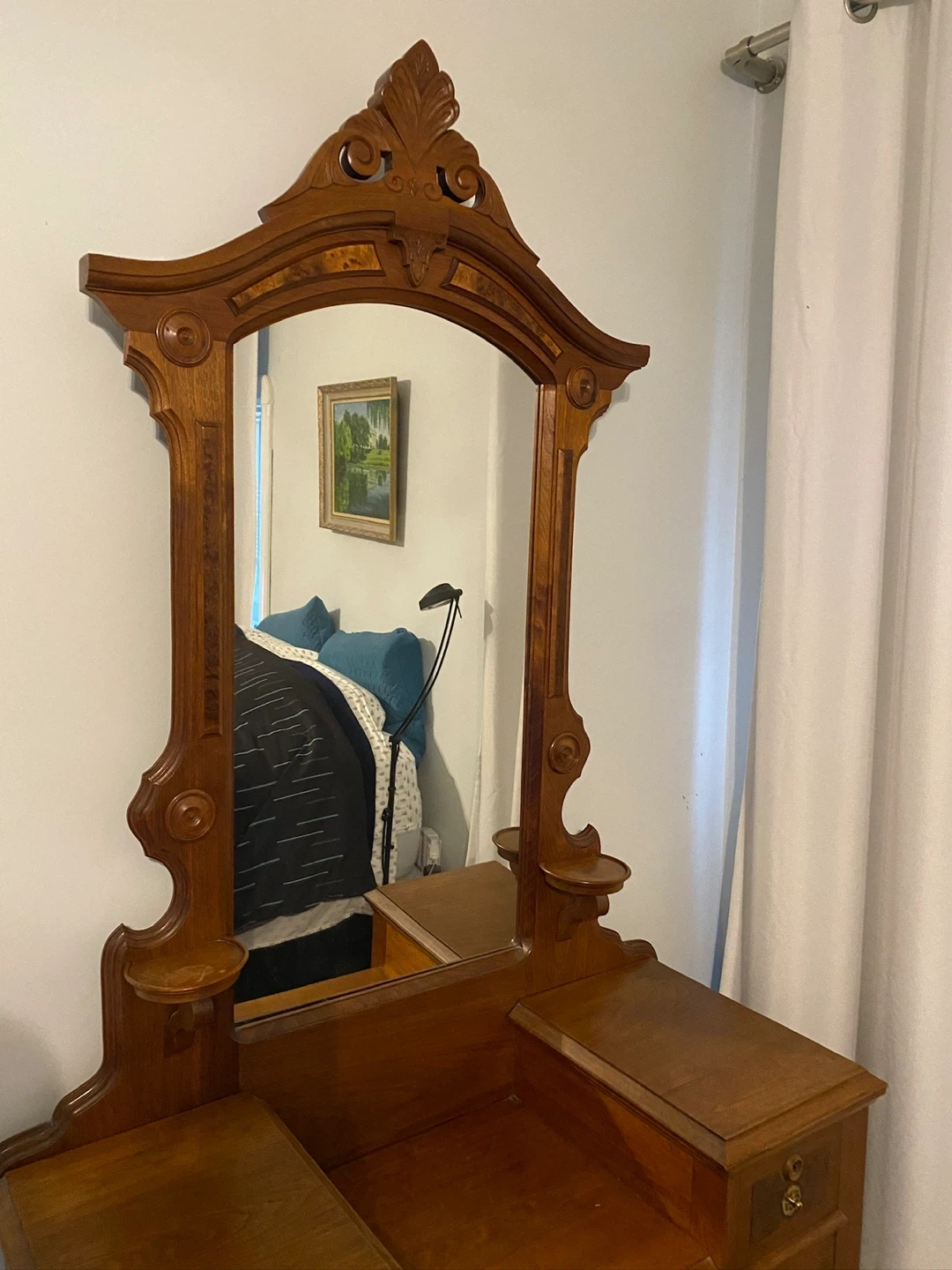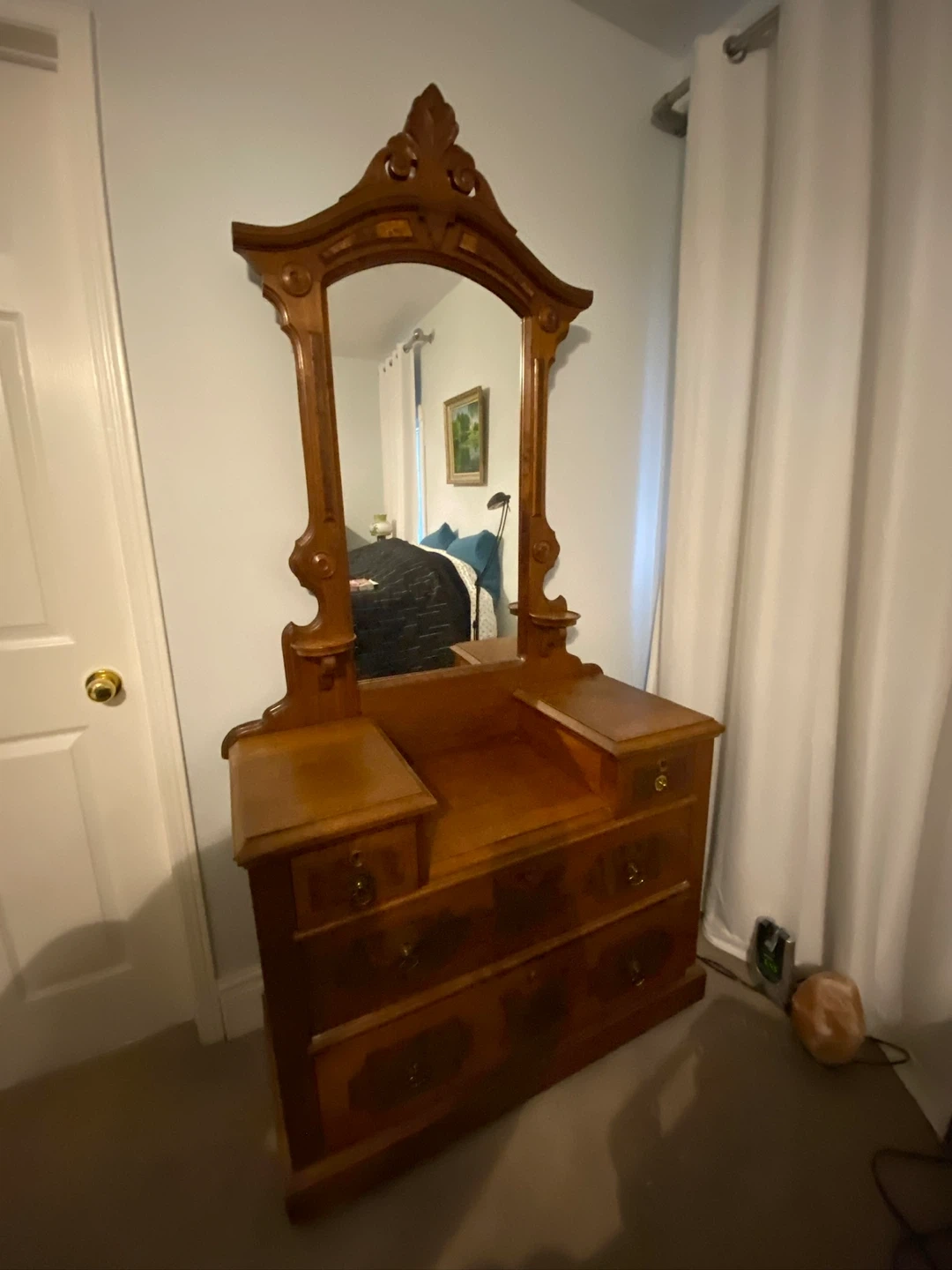 Antique Wood Vanity Dresser with Mirror