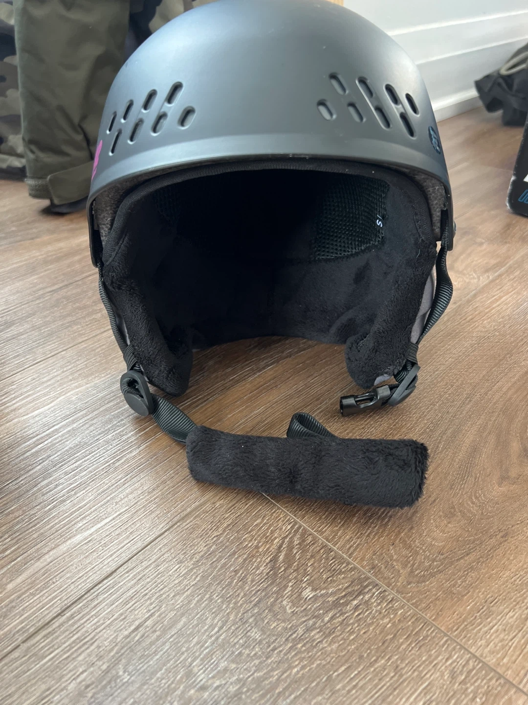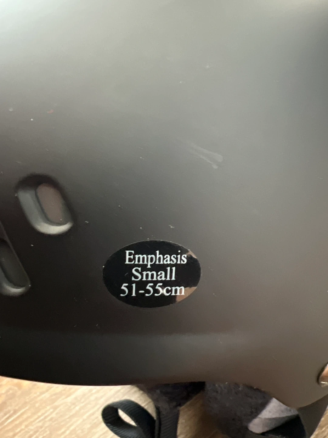 This is a K2 Emphasis ski helmet with a dialed fit system. It's a size small, measuring 51-55cm. The helmet has a black exterior with grey and black interior padding. Multiple scratches visible.