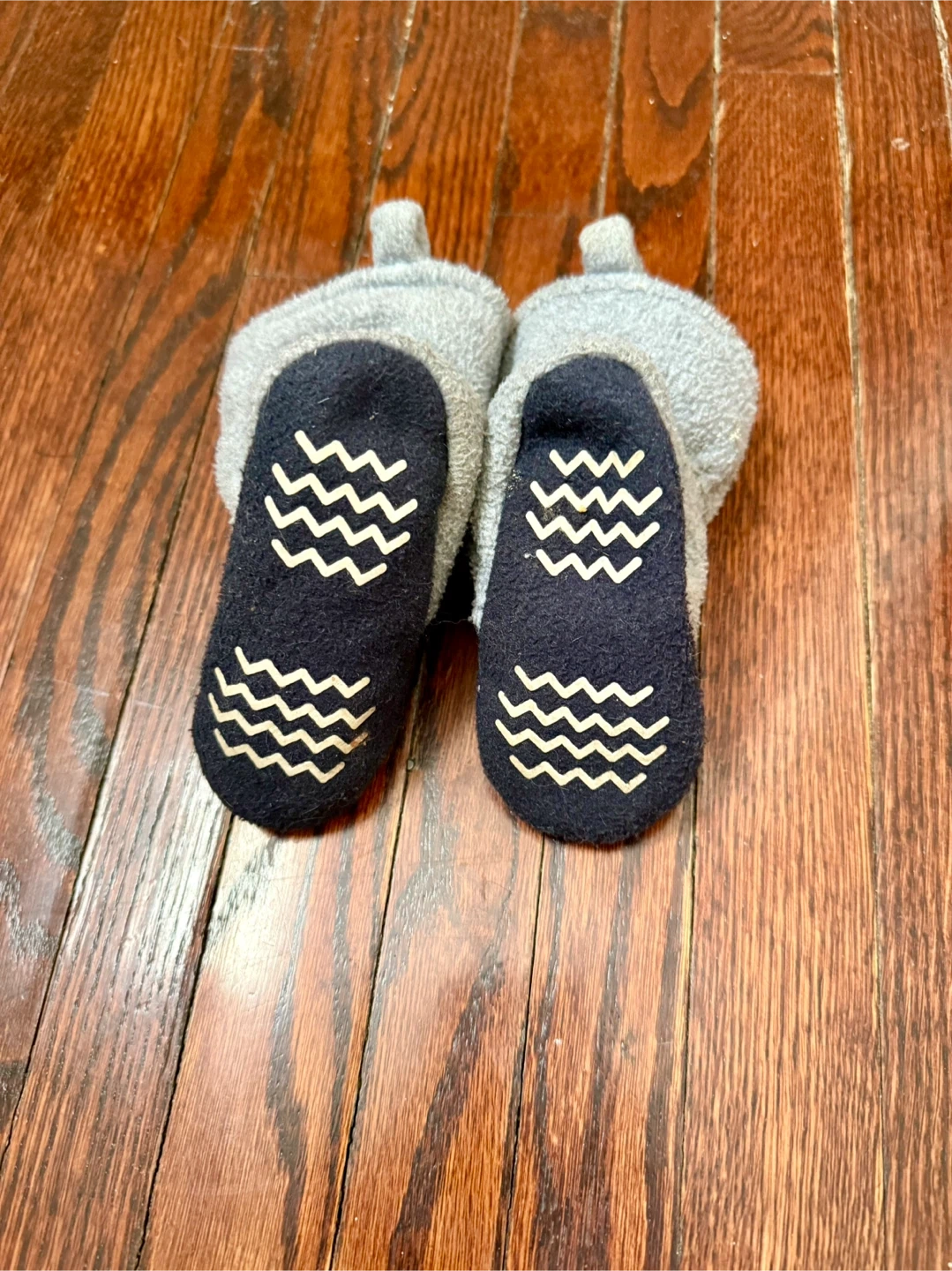 Baby booties brand: Hudson’s Bay. Size 12-24 months, stretchy fit with non-slip bottom.