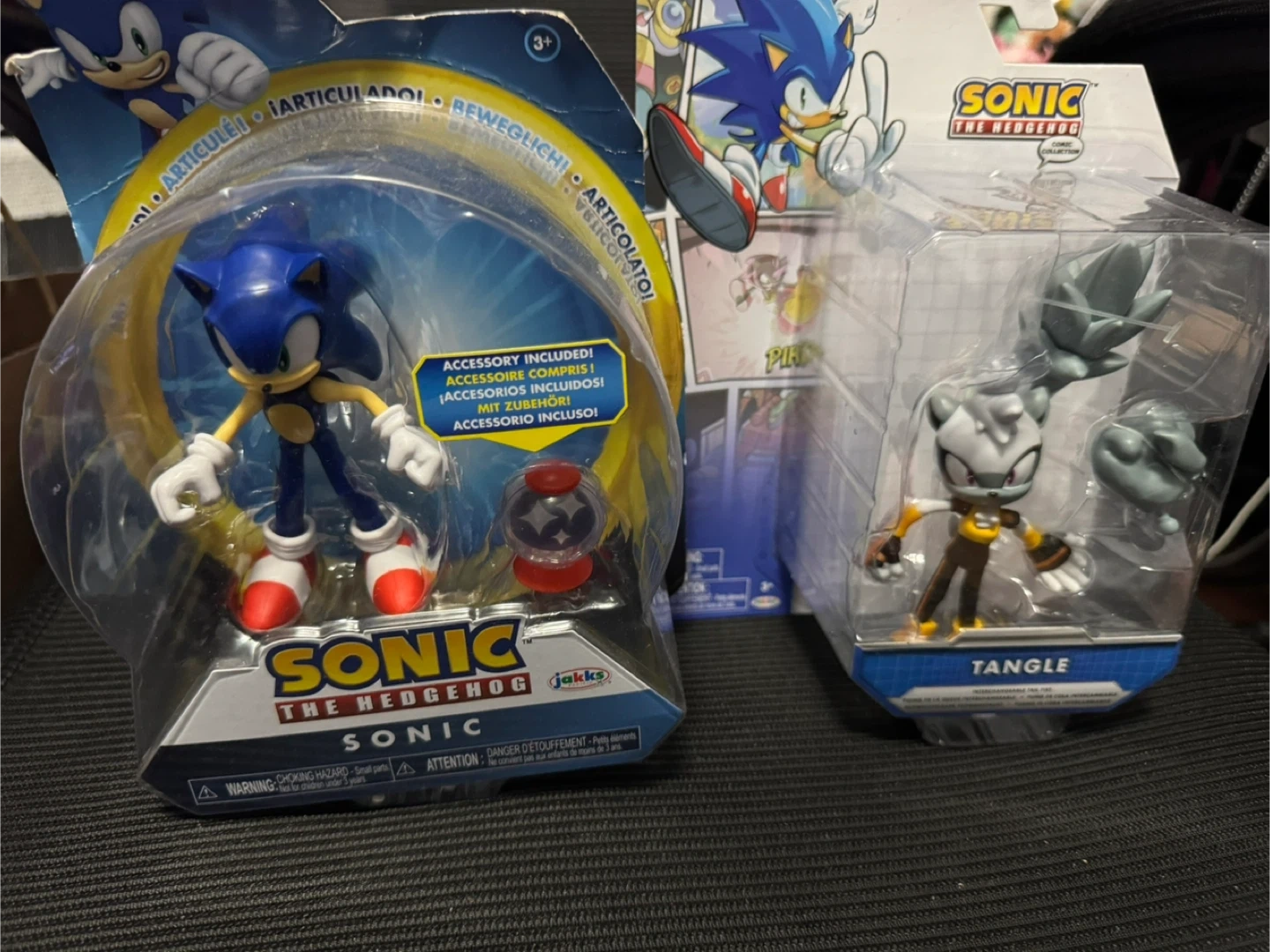 Get these two articulated Sonic the Hedgehog action figures, Sonic and Tangle. Both figures are brand new in their packaging and come with accessories. They're ready for adventure!