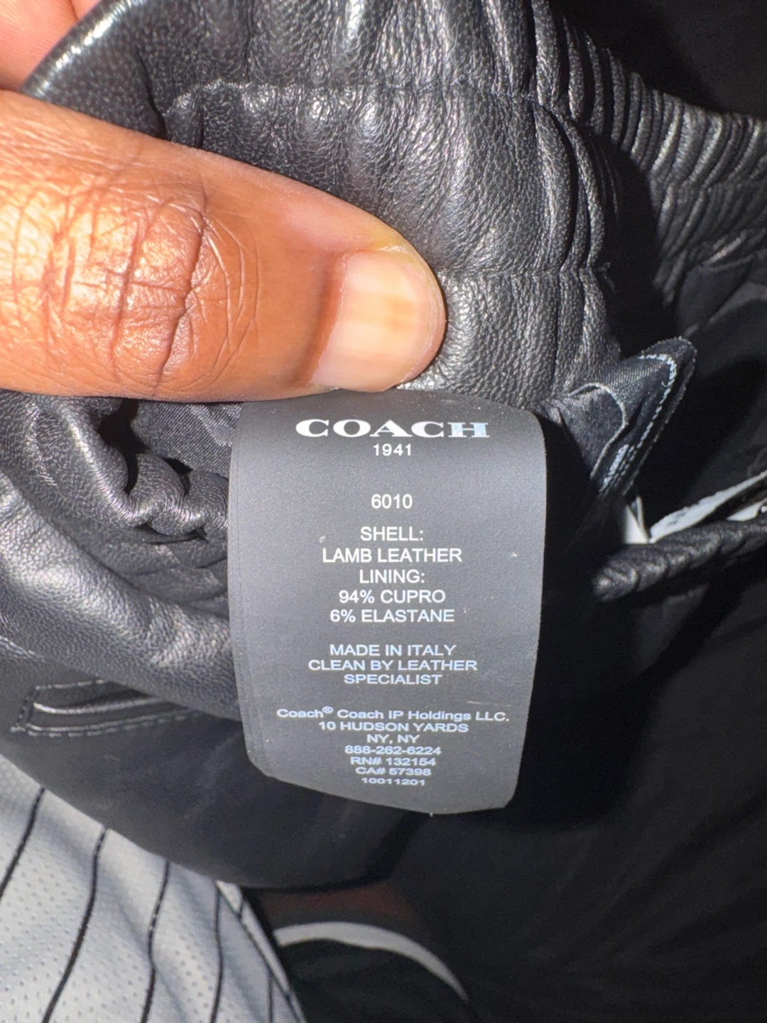 COACH 1941 jogger pants made from 100% lamb leather. These pants are made in Italy and feature a size 0 fit. The lining is 94% cupro and 6% elastane. They're perfect for adding a touch of luxury to any outfit! Message for more details!! Also check the page out for more items