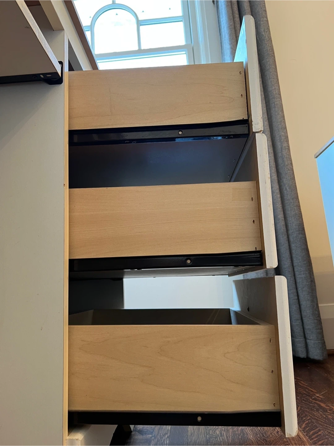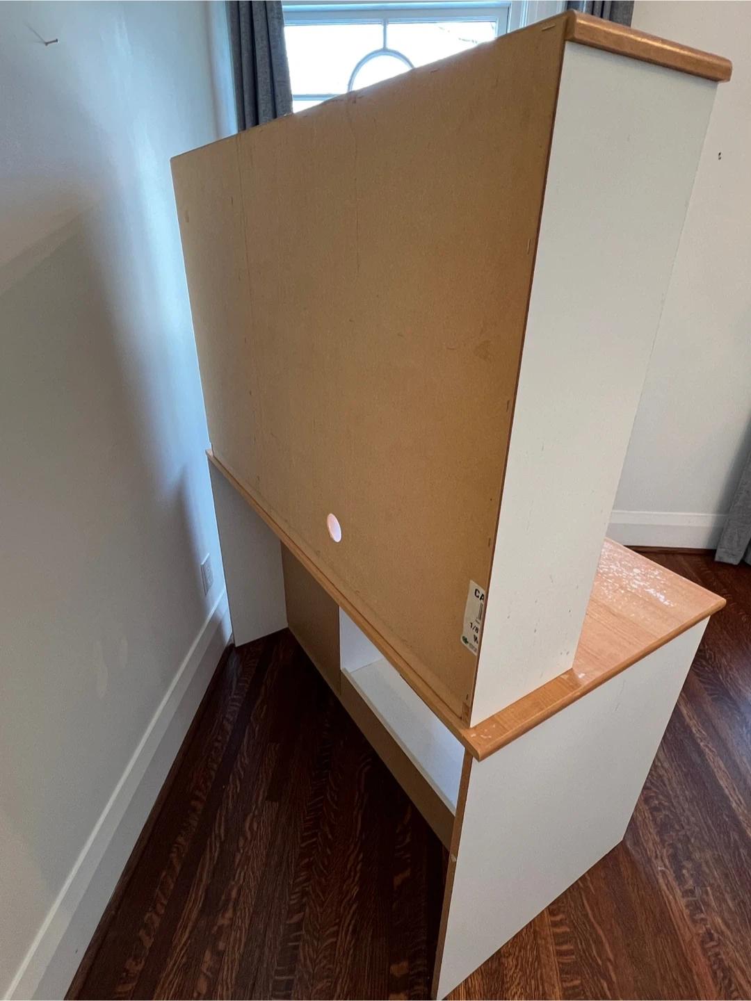 White and wood hutch desk with drawers