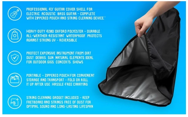 Made from heavy-duty 420D oxford polyester, it's durable, all-weather-resistant, waterproof, and protects against strong UV rays. It's also reversible. Protect your expensive instrument from dirt, dust, debris, sun, and natural elements – ideal for outdoor gigs, concerts, or shows.