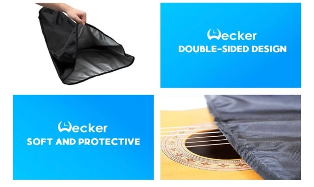 Keep your guitar pristine with the Wecker heavy-duty 43-inch guitar dust cover, complete with a storage bag and string cleaner tool. This cover offers full protection from dust and scratches. It's a professional 43” cover for electric, acoustic, or bass guitars, and includes a string cleaning device.