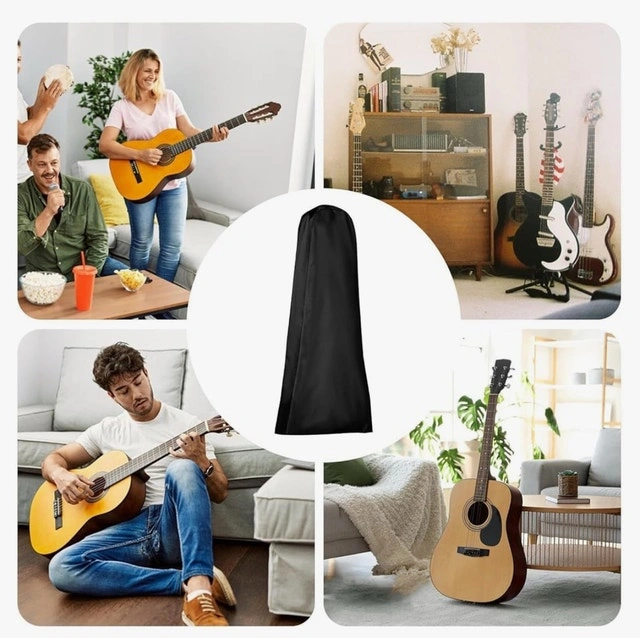 Keep your guitar pristine with the Wecker heavy-duty 43-inch guitar dust cover, complete with a storage bag and string cleaner tool. This cover offers full protection from dust and scratches. It's a professional 43” cover for electric, acoustic, or bass guitars, and includes a string cleaning device.