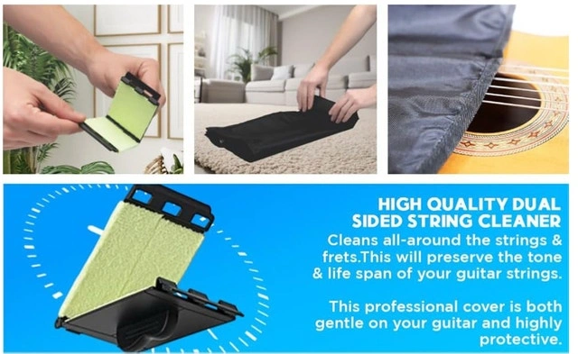 It's portable, with a zippered pouch for convenient storage and transport. You can fold or roll it up after use for hassle-free carrying. The included string cleaning gadget helps keep your fretboard and strings free of dust for optimal sound and a long-lasting lifespan.