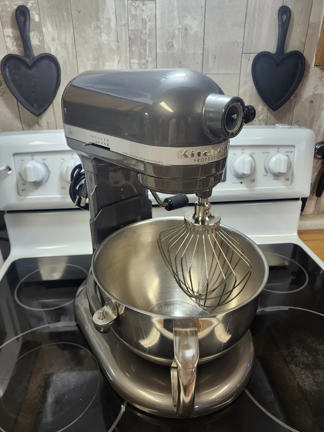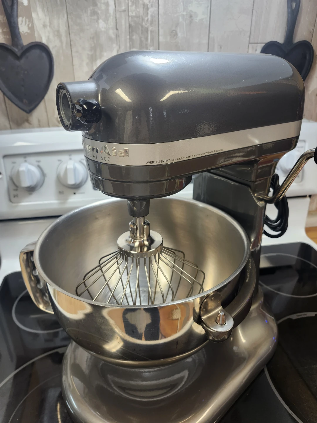 KitchenAid Professional 6 QT 575 Watt Mixer. Just rebuilt. Entire new transmission gear assembly. Regreased and deep cleaned. Bowl lifts smooth, mixer runs great. Mixer only comes with whisk attachment.
