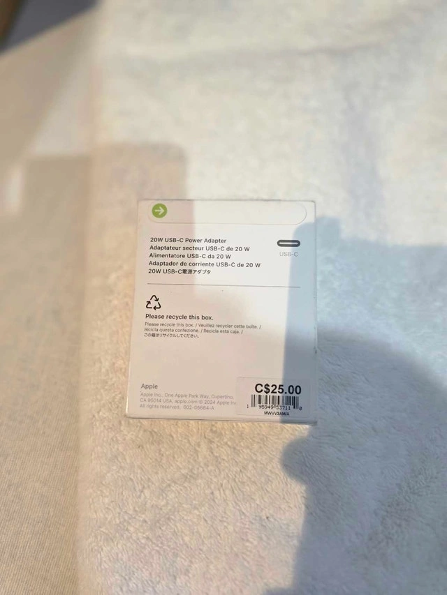 Brand new, genuine Apple 20W USB-C Power Adapter. Never used. Fast charging compatible with iPhone, iPad, etc. Compact and reliable. Pickup in Toronto.