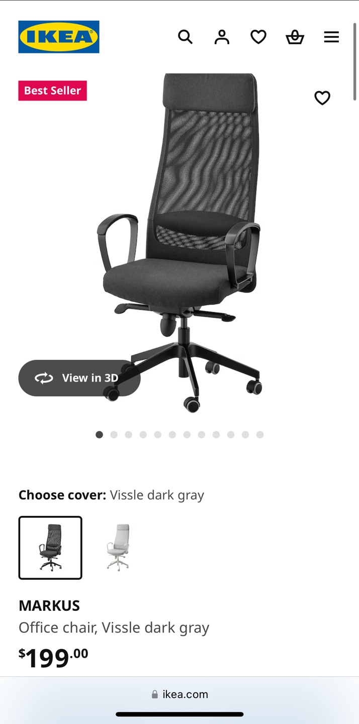 1 / 31 / 3Buy & SellIKEA MARKUS Office Chair - BlackIKEA MARKUS Office Chair - Black$35Comfortable office chair. Mesh back and black leatherette seat. Adjustable height. Great condition. Retail price is $199 + tax.WHERE TO MEETKitsilanoView MapSELLERverifiedDanKitsilano720 reviews1 chats·0 favorites·12 viewsSEND CHAT TO SELLERHi Dan! I’m interested in your listing.Hi Dan! I’m interested in your listing.Get the Karrot app to chatSign In to chat