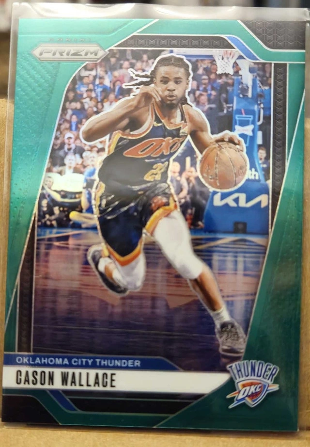 Selling a collection of basketball rookie cards featuring Jalen Williams and Aaron Wiggins among other NBA superstars.
