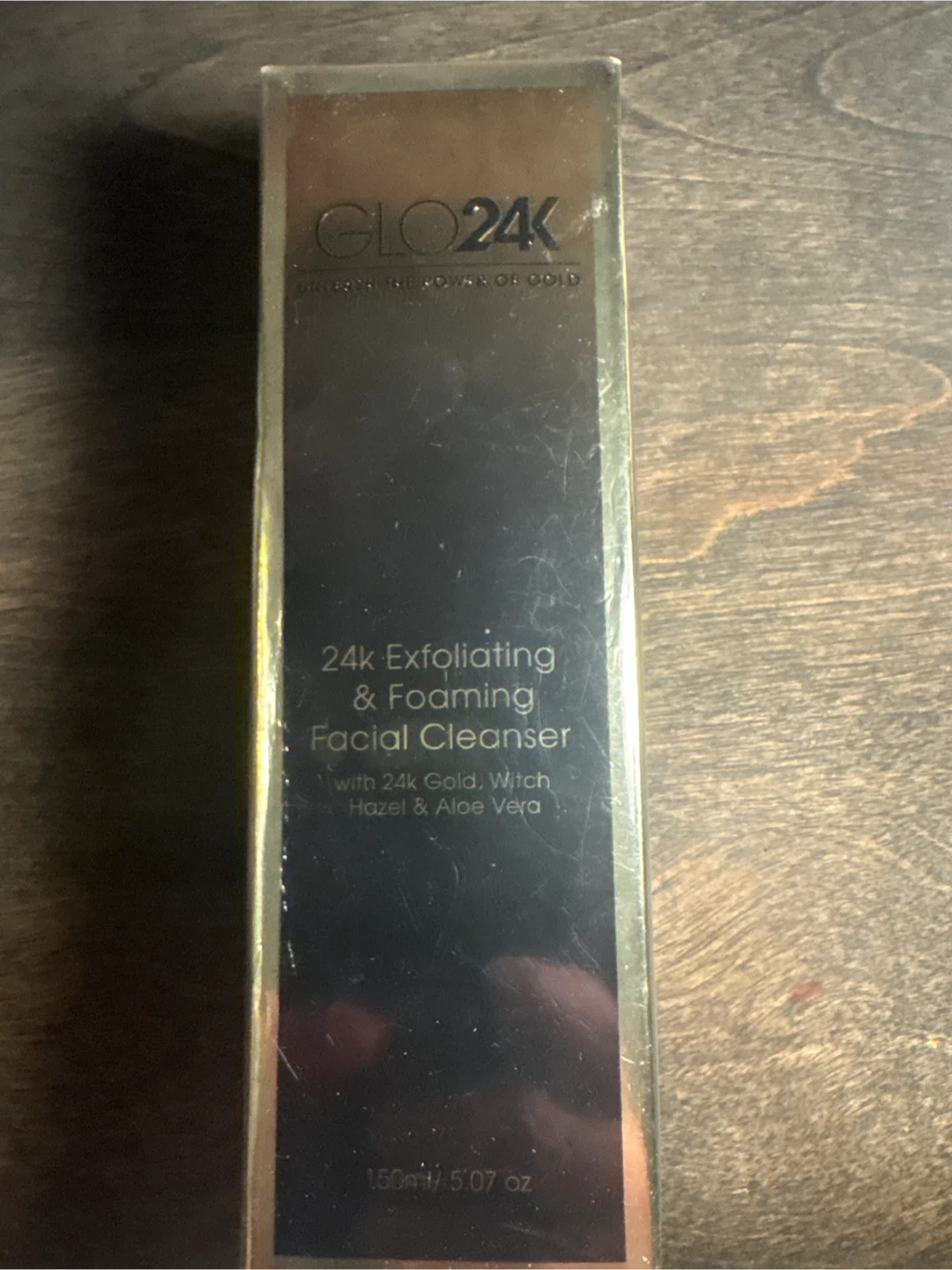 This is a Glo24k 24k Exfoliating & Foaming Facial Cleanser. It's 150ml or 5.07 oz. Contains 24k Gold, Witch Hazel, and Aloe Vera.