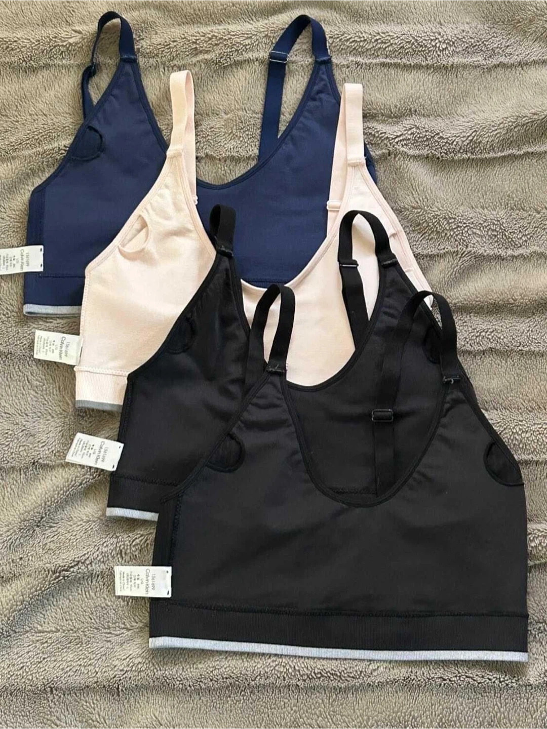 Selling a set of Calvin Klein bras in black, light pink and blue. These are in great condition and ready for a new owner! Perfect for everyday wear and super comfy
