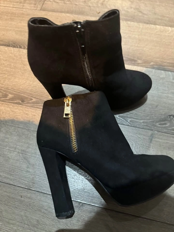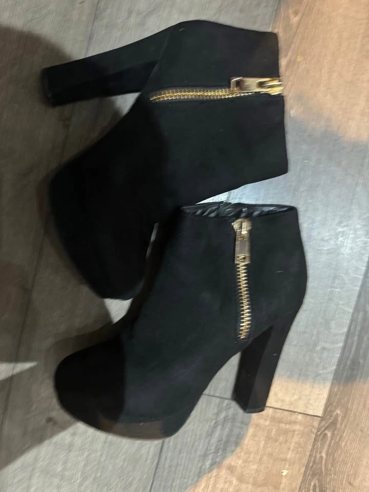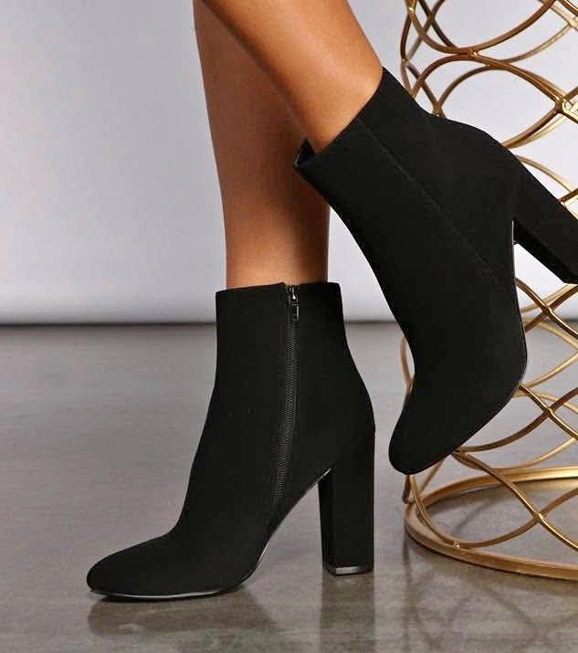 I love these but they fit size 7 snug. They are perfect for Christmas dinners with tights. The model picture is just for an idea, but the boots are squared super sexy. Pick up 29 and 151st