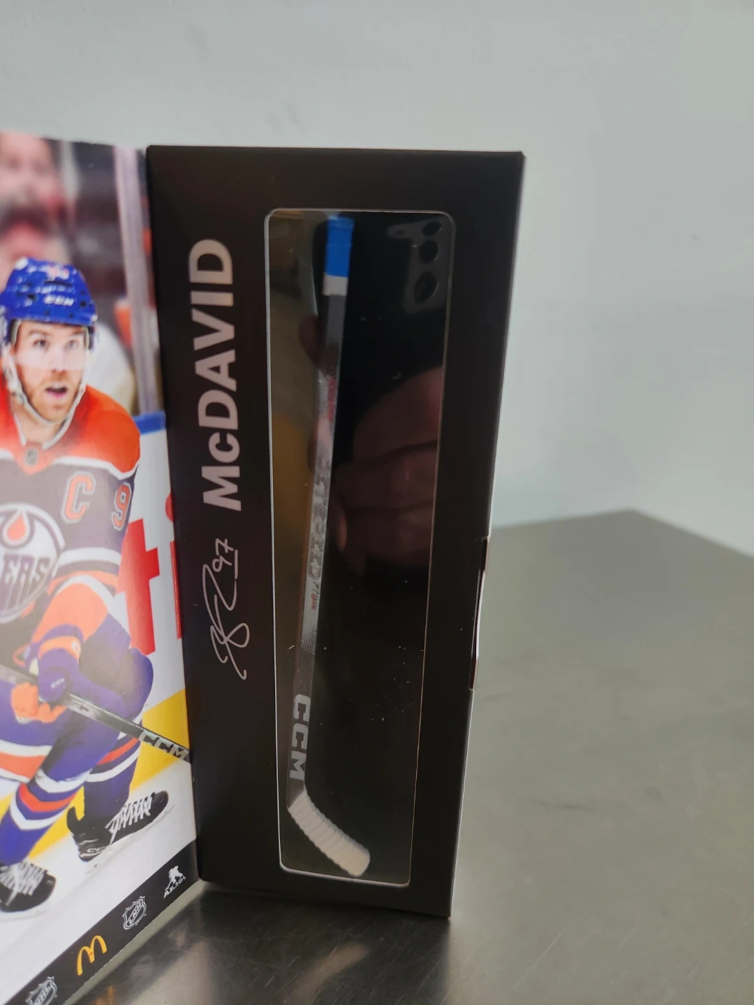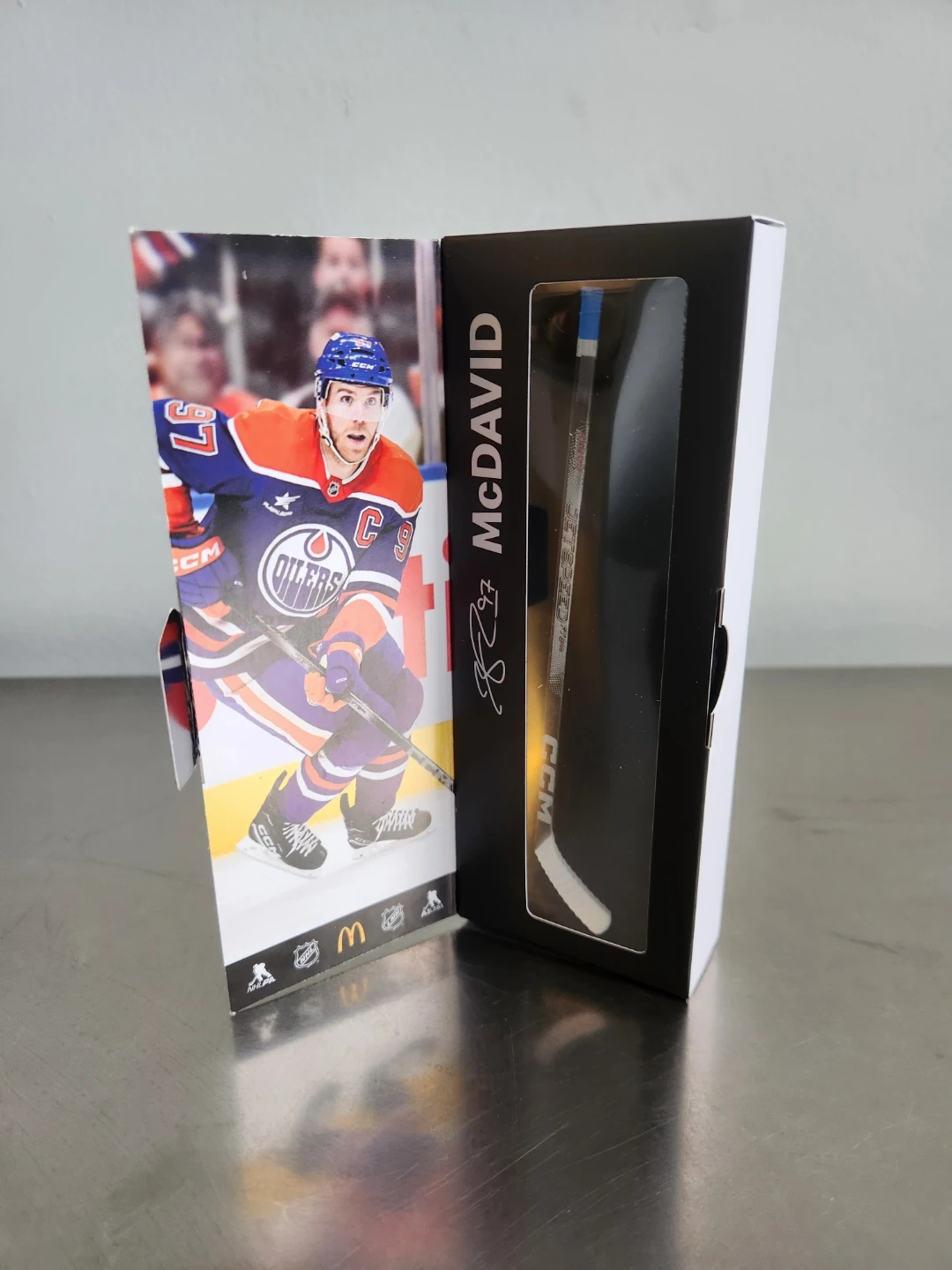 This is a collectible mini hockey stick featuring Connor McDavid. It's part of the NHL Star Sticks promotion from McDonald's for the 2025-2026 season. Perfect for any hockey fan's collection!