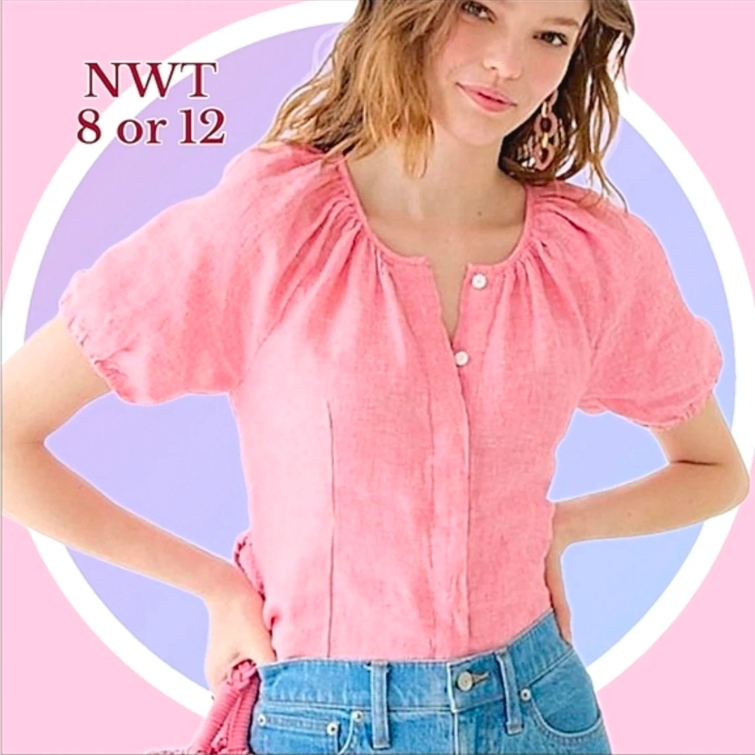 NWT Sz 8 J Crew Reversible V Back Linen Scoop Neck Top π